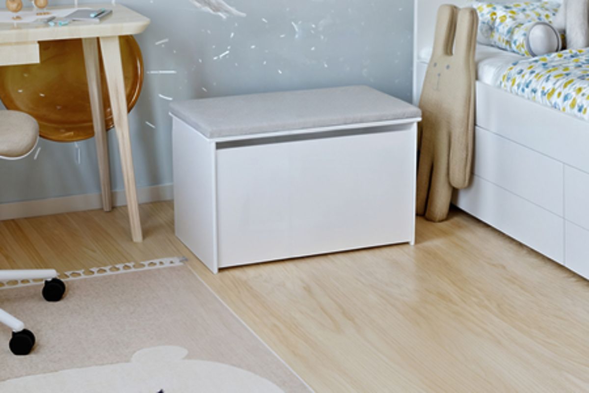 Skrzynia na zabawki z siedziskiem w kolorze szarym. .. więcej