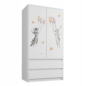 Szafa wykonana z białej płyty wiórowej, powierzchnia pokryta fornirem. Wewnątrz znajduje się drążek na wieszaki, cztery półki oraz dwie szuflady umieszczone w dolnej części . Obraz ma ładne żywe kolory, który dodatkowo zabezpieczony jest specjalnym laminatem, dzięki czemu nie blaknie i nie ściera się. Bez obaw można go myć szmatką i płynem.