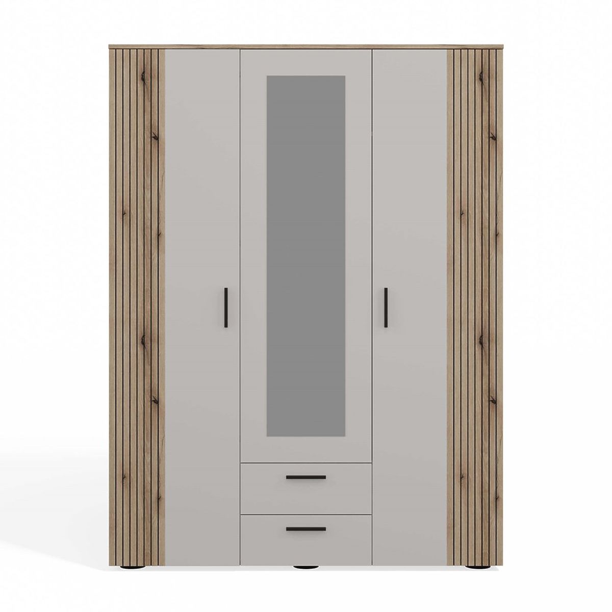 Nowoczesna forma z trzema drzwiami i centralnym lustrem – idealna do aranżacji w stylu nowoczesnym, skandynawskim i boho