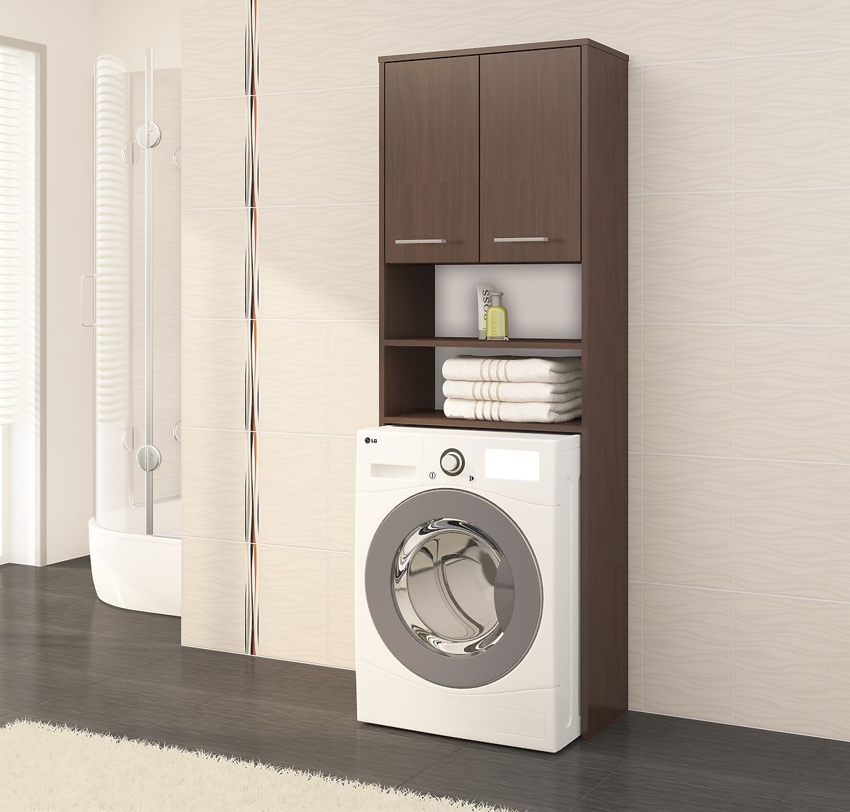 Szafka łazienkowa nad pralkę w kolorze wenge z półkami i drzwiami. .. więcej