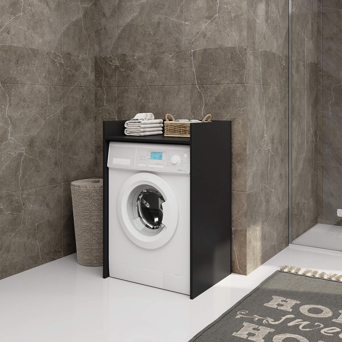 Szafka nad pralkę z laminowanej płyty w kolorze czarnym. .. więcej
