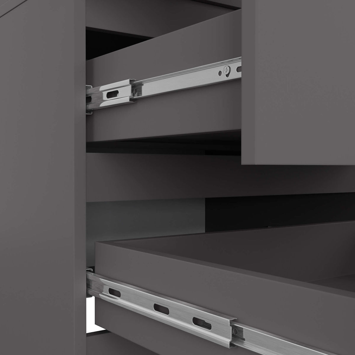 - Szuflady poruszają się na metalowych prowadnicach kulkowych renomowanej firmy GTV- Krawędzie oklejone obrzeżem ABS zapewniającym wysoką ochronę przed uszkodzeniami