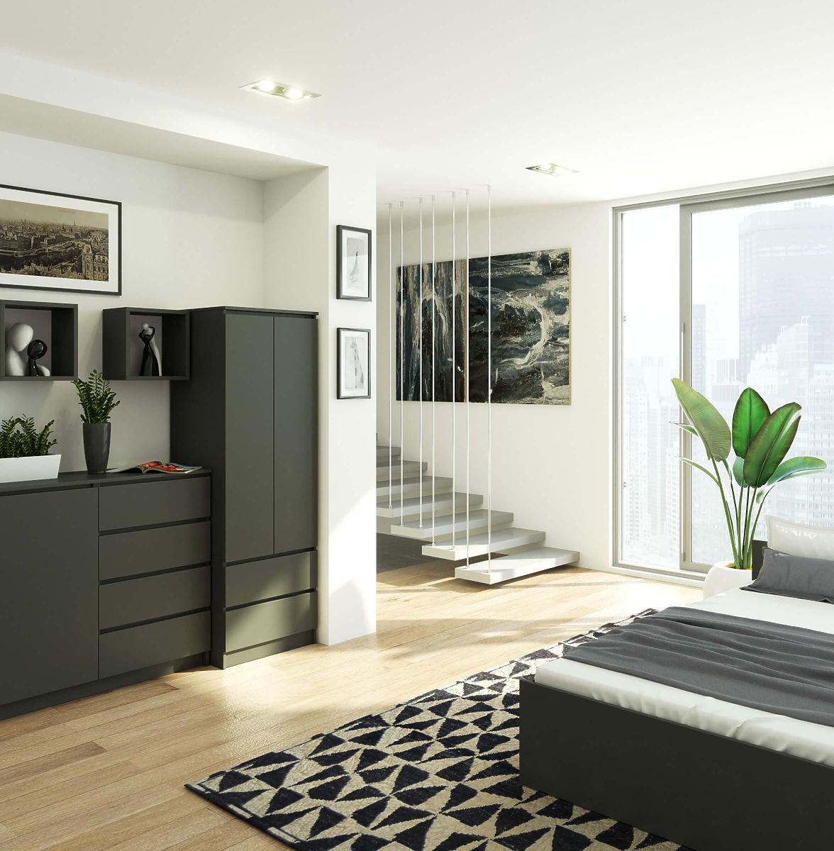 Szafka z 2 drzwiami i 2 szufladami w kolorze grafitowym. .. więcej