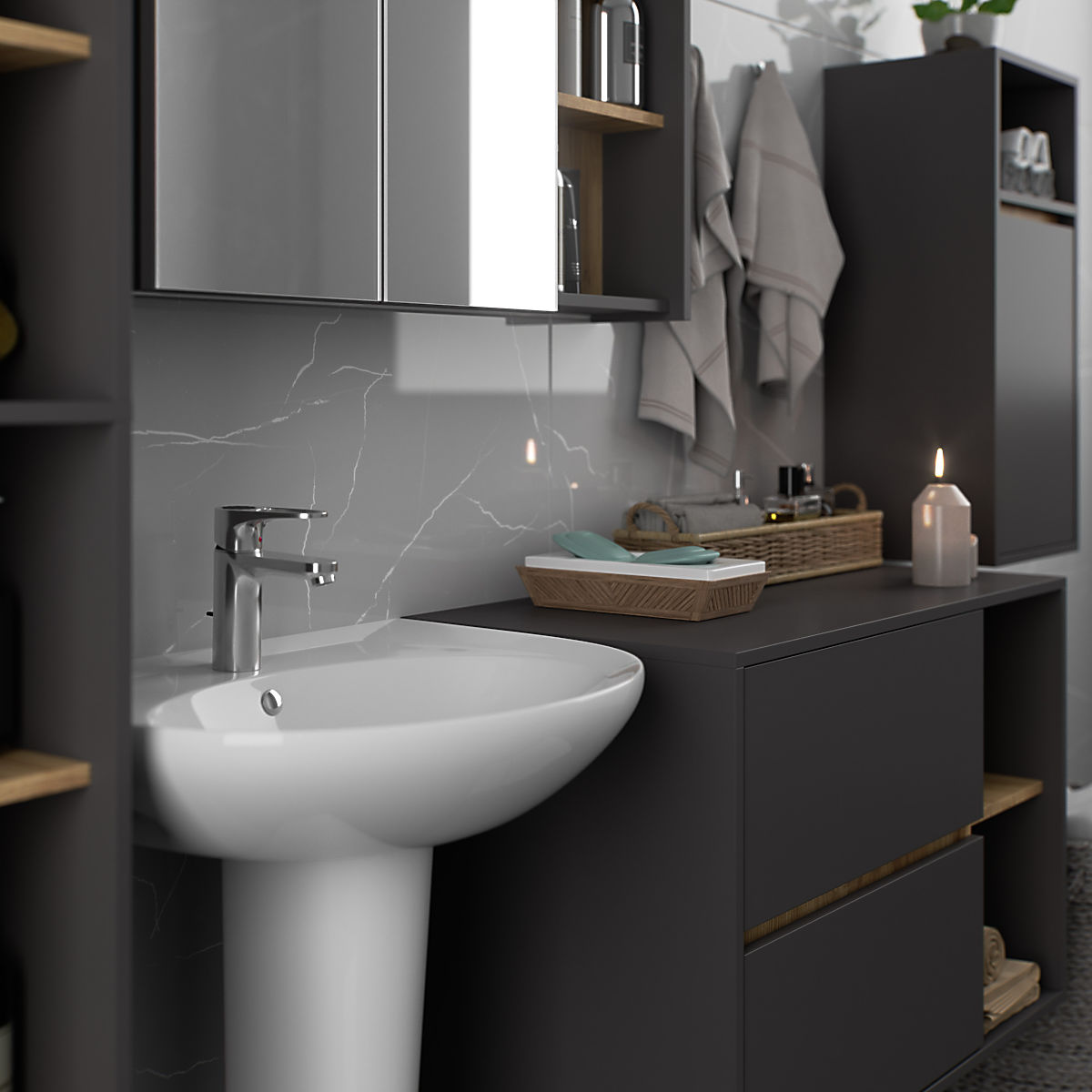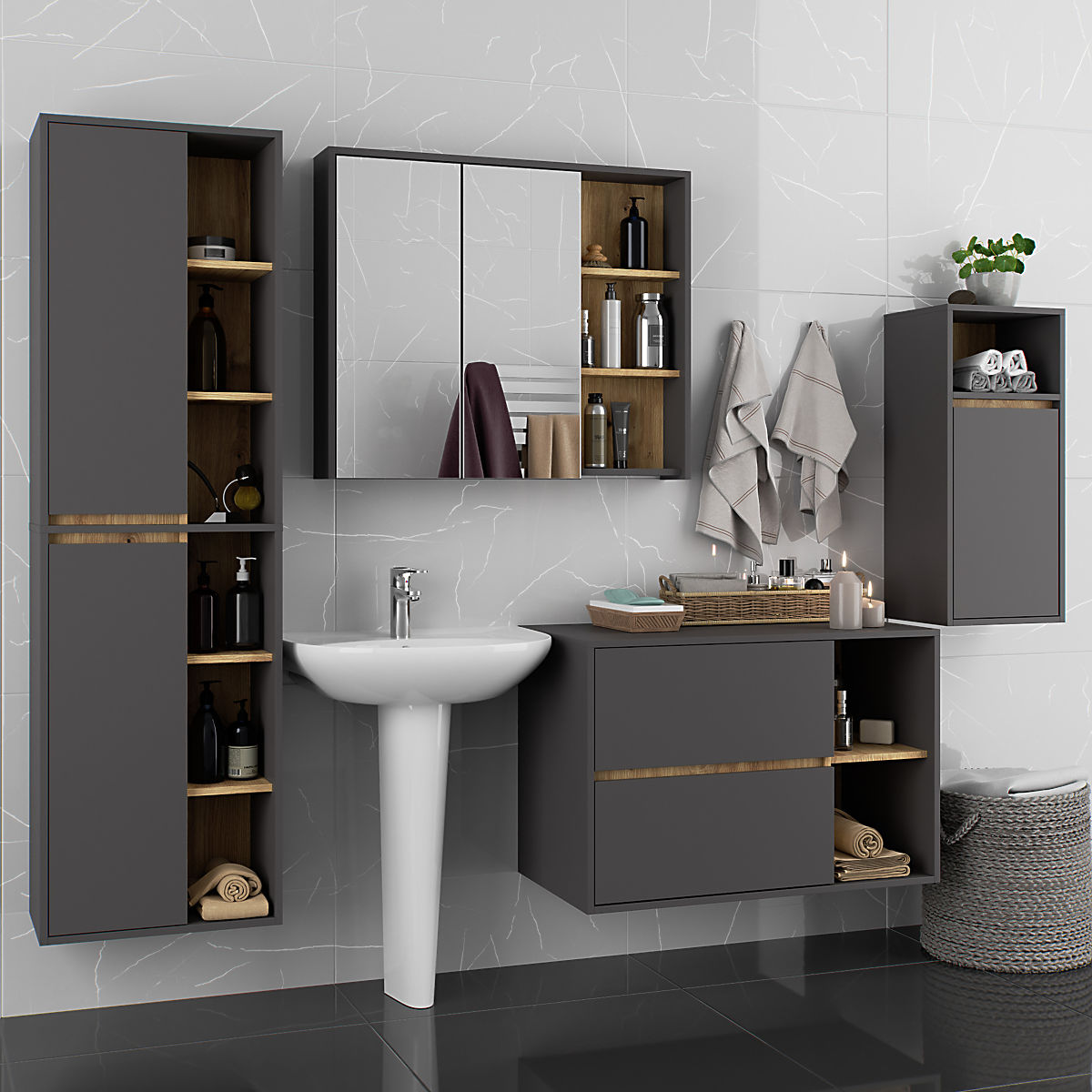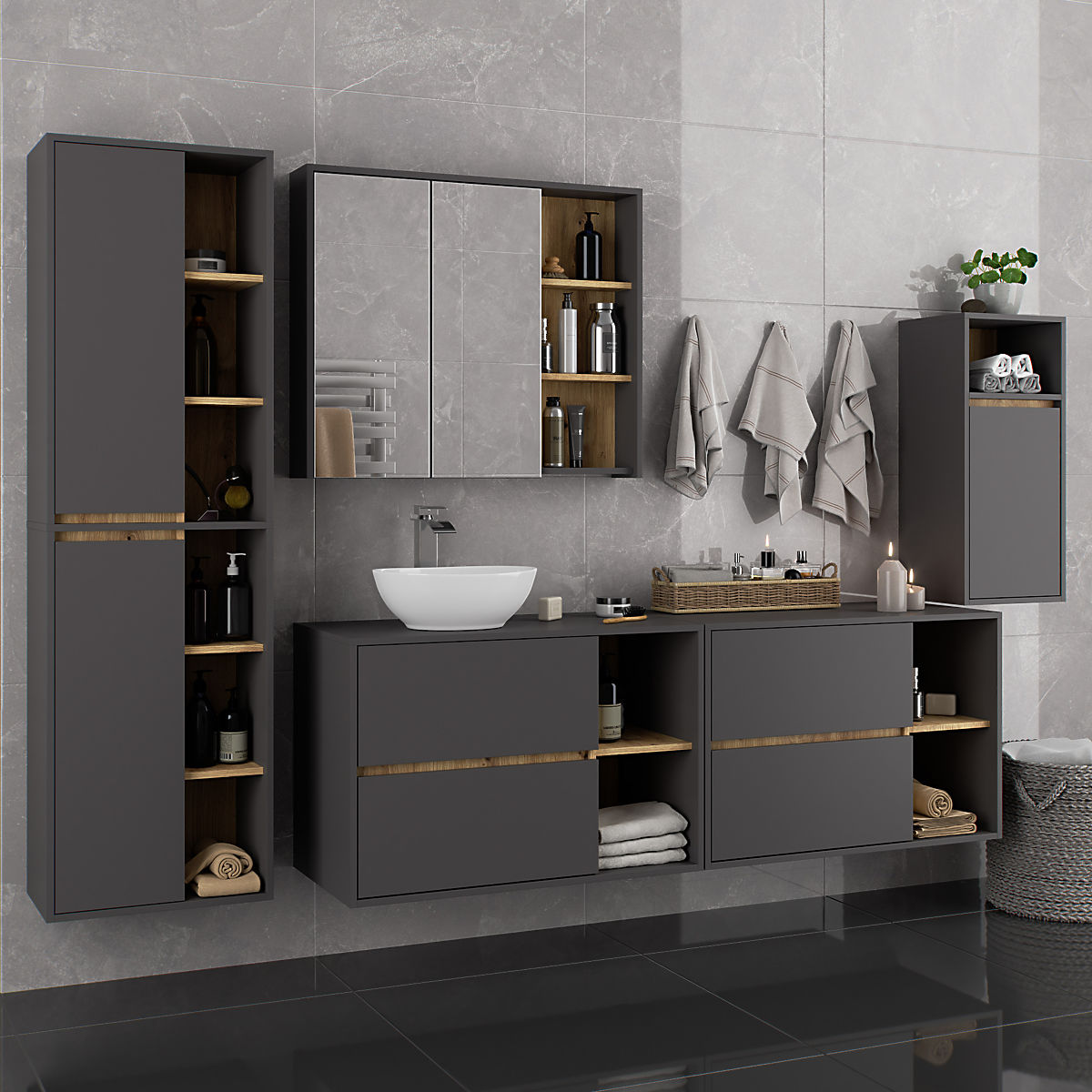Banaby.pl » Meble dziecięce / Komody i szafy / Szafy / WISZĄCA SZAFKA ŁAZIENKOWA VAMI W35 1D 1W GRAFITOWY SZARY / DĄB ARTISAN