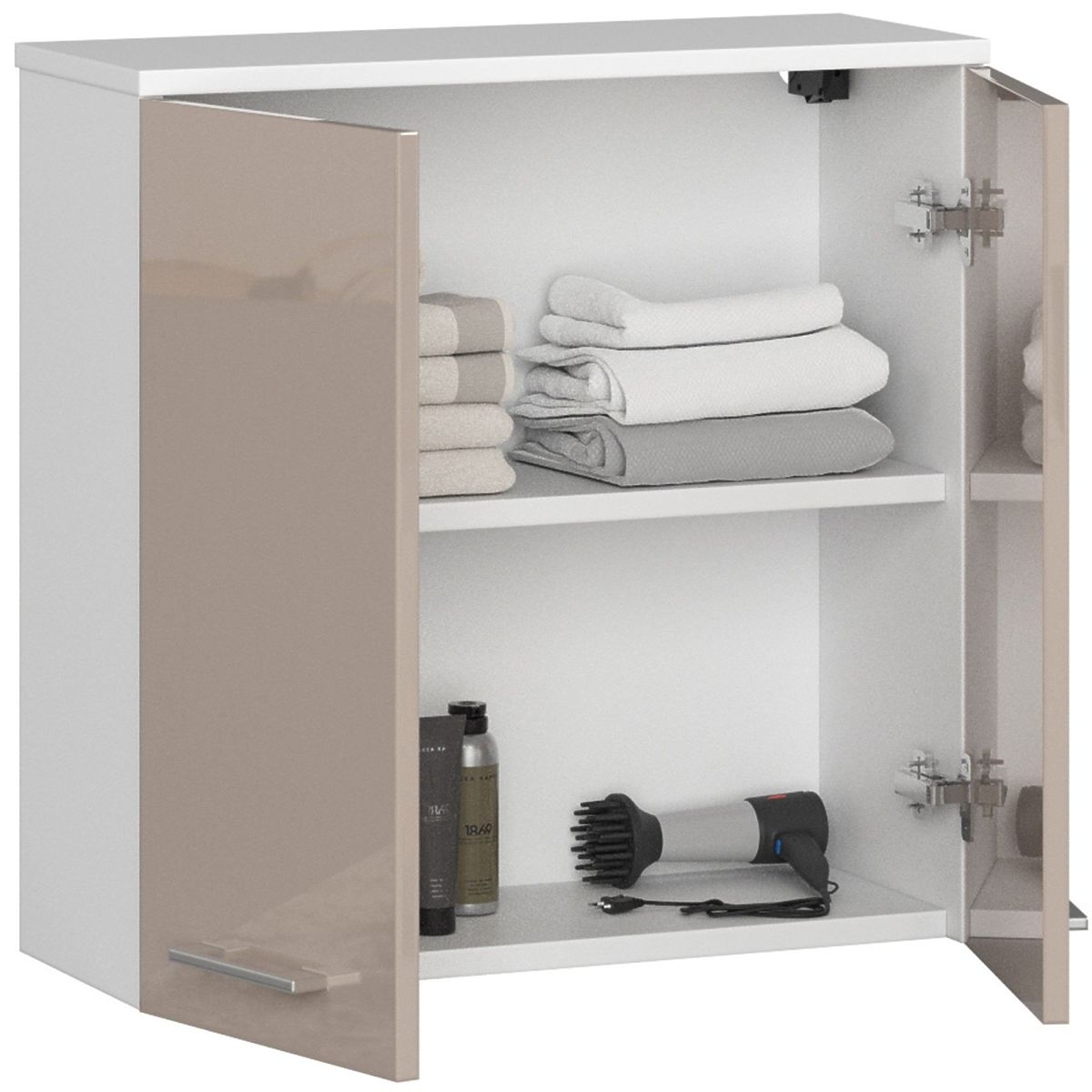 Wisząca szafka łazienkowa z uchylnymi drzwiami i kawowym połyskiem. .. więcej