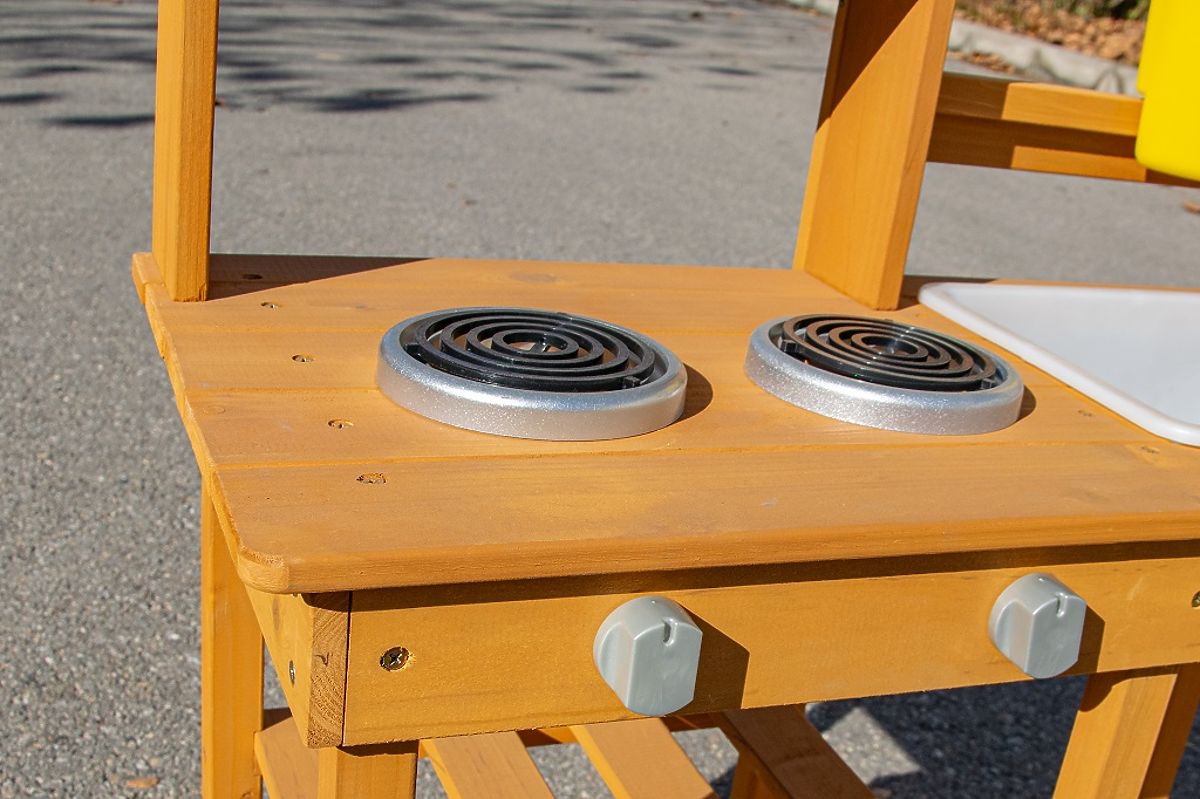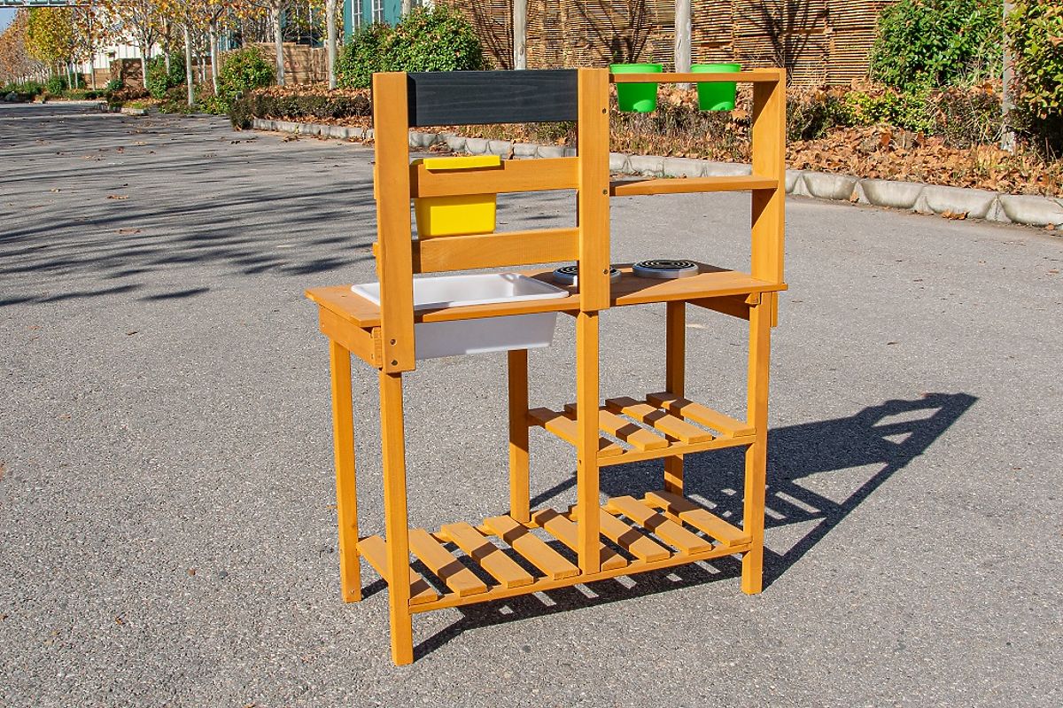 Drewniana kuchnia ogrodowa z umywalką dla dzieci. .. więcej