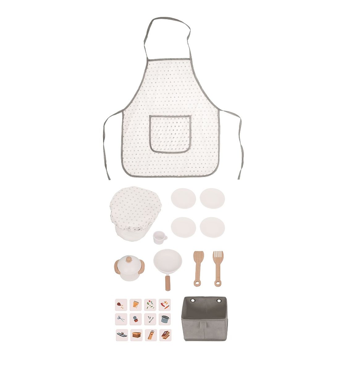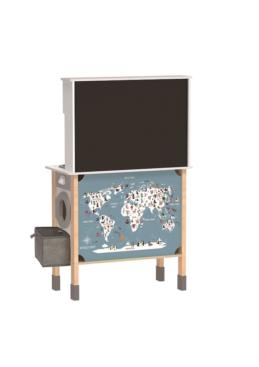 Chcesz świeżego ciasta prosto z pieca? A może masz ochotę na coś smażonego? Z tą kuchnią możesz mieć menu, jakie tylko zechcesz. Jest bowiem w pełni wyposażona! Znajdziesz tu wszystko, co niezbędne w nowoczesnej kuchni - kuchenkę z piekarnikiem, zmywarkę, mikrofalówkę, zlew, ekspres do kawy oraz oczywiście naczynia i przybory, takie jak talerze, garnek, patelnia, kubek i inne. Na bocznej stronie kuchni znajduje się pralka, z której można umieścić wyprane pranie w zawieszonym, zdejmowanym koszyku. Nawet tylna strona kuchni nie została niewykorzystana. Na praktycznej czarnej tablicy dzieci mogą napisać wiadomość, spisać składniki przepisów lub coś narysować. Jako inspiracja może im posłużyć zabawna mapa ze zwierzętami, która również znajduje się z tyłu. Więc załóż czapkę kucharską, ubierz praktyczny fartuch i możesz zacząć gotować. Ponieważ dbamy o planetę Ziemię, nie możemy zapomnieć o koszach do segregacji! Główne cechy: bogate wyposażenie w zestawie, wielofunkcyjne, różnorodne zastosowanie, rozwija umiejętności komunikacyjne i społeczne, wykonane z drewna z certyfikatem FSC® Marka i certyfikat FSC® (Forest Stewardship Council) gwarantuje, że drewno, z którego produkt został wykonany, nie zostało pozyskane nielegalnie i pochodzi z lasów zarządzanych w sposób zrównoważony lub bliski naturze, gdzie przestrzegane są surowe wymagania środowiskowe i społeczne. Marka FSC® na produkcie oznacza, że swoim zakupem pomagasz chronić lasy i wspierasz zrównoważone, odpowiedzialne lub bliskie naturze gospodarowanie, dzięki któremu nasze lasy są bardziej stabilne, zdrowsze, mają naturalny skład gatunkowy i lepiej odpierają negatywne skutki zmian klimatycznych.