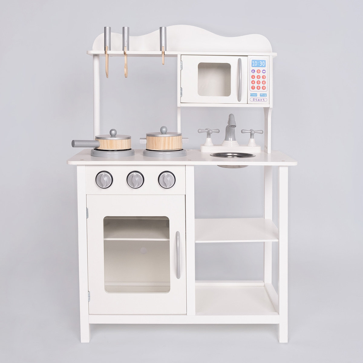 Zarówno dziewczynki, jak i chłopcy pokochają klasyczną drewnianą kuchnię Meggie z dodatkami o uniwersalnym designie. Dzieci uwielbiają zabawki, dzięki którym mogą naśladować codzienne czynności dorosłych.