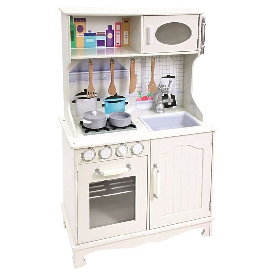Piękna biała kuchenka w stylu retro zachwyci wszystkie dzieci, które uwielbiają gotować. Właściwości: - jest wyposażona w piecyk z piekarnikiem, kuchenkę .. więcej