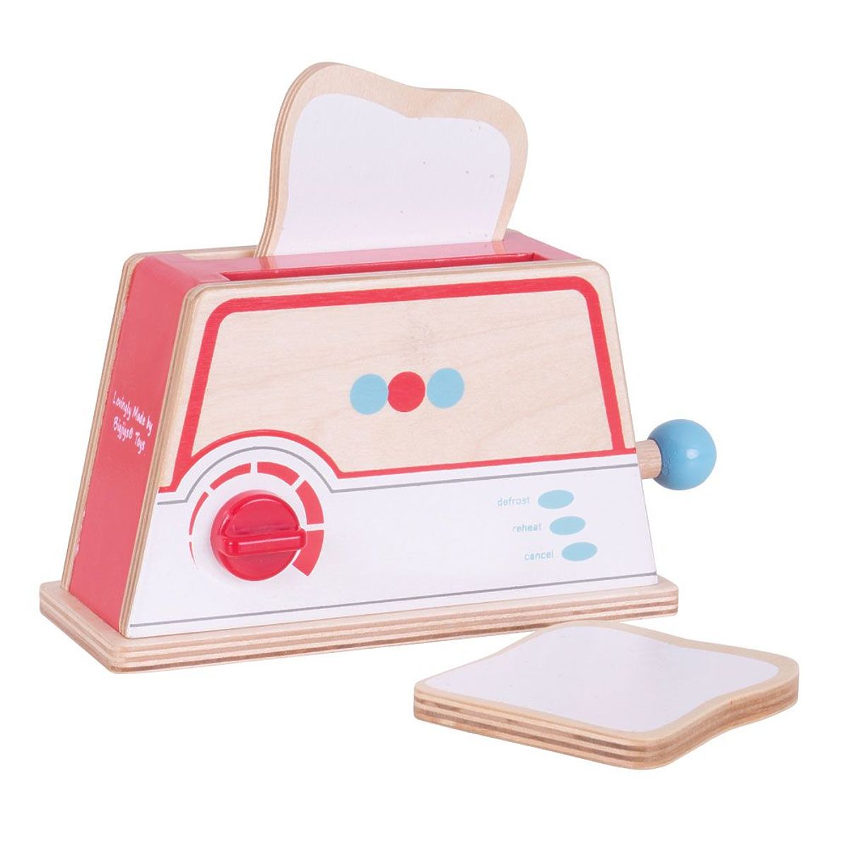 Czas na tosty z drewnianym tosterem Bigjigs Toys, doskonałym dodatkiem do każdej drewnianej kuchni. Włóż drewniane kromki chleba do szczelinowego tostera, a następnie ustaw pokrętło na preferowane ustawienie. Niezależnie od tego, czy Twoje dziecko lubi lekko przyrumienione, czy dobrze wypieczone, istnieje ustawienie, które zadowoli każdego. Po opieczeniu wyjmij: Główne cechy: wspiera kreatywną i pomysłową zabawęwykonane z wysokiej jakości, odpowiedzialnie pozyskiwanych materiałówspełnia aktualne europejskie normy bezpieczeństwa