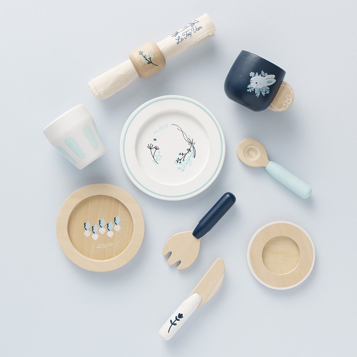 Obiad smakuje lepiej, gdy jest serwowany na ładnej zastawie. Ta zabawka jest trwała i posłuży naprawdę długo. Naturalny kolor drewna, biel i odcienie niebieskiego ładnie się komponują, nie brakuje również ilustracji roślin. W zestawie znajdziesz kubek, spodek, kubeczek, 2 talerze, nóż, widelec, łyżkę i serwetkę z dekoracyjnym pierścieniem. Dzieci podczas zabawy rozwijają małą motorykę, zręczność i koordynację ręka-oko. Malowane nietoksycznymi farbami na bazie wody. Zabawki z celemWszystkie zabawki firmy Le Toy Van są stworzone z myślą o długowieczności. Projektowane z miłością przez doświadczonych rzemieślników, z użyciem etycznych praktyk i zrównoważonych materiałów, które są przyjaźniejsze dla naszej planety. Główne cechy: wykonane etycznie z zrównoważonego drewna, testowane według najsurowszych standardów, malowane nietoksycznymi farbami na bazie wody, inspiruje do kreatywnej zabawy, rozwija umiejętności poznawcze Kolekcja Honeybake: Zabawki z tej kolekcji są odpowiednie do odkrywania, pomagają dzieciom w rozwoju wyobraźni, umiejętności społecznych i werbalnych oraz funkcji poznawczych. Tradycyjny design z nowoczesnymi detalami na pewno spodoba się dzieciom. Honeybake to kolekcja Le Toy Van, która zdobyła najwięcej nagród za design, jakość, bezpieczeństwo oraz wartość edukacyjną i zabawową. Marka i certyfikat FSC® (Forest Stewardship Council) gwarantuje, że drewno, z którego produkt został wykonany, nie zostało nielegalnie wycięte i pochodzi z lasów zarządzanych w sposób zrównoważony lub bliski naturze, gdzie przestrzegane są surowe wymagania środowiskowe i społeczne. Znak FSC® na produkcie oznacza, że swoim zakupem pomagasz chronić lasy i wspierasz zrównoważone, odpowiedzialne lub bliskie naturze gospodarowanie, dzięki któremu nasze lasy są bardziej stabilne, zdrowsze, mają naturalny skład gatunkowy i lepiej odpierają negatywne skutki zmian klimatycznych.