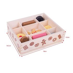 To drewniane pudełko na ciasteczka jest pełne smakowicie wyglądających drewnianych smakołyków. Zawiera asortyment ciastek, które wszyscy uwielbiają, w tym pierniki, lovelies itp. Niech rozpocznie się popołudniowa impreza podwieczorek. To wspaniałe pudełko na cukierki to narzędzie, które pomoże Twojemu maluchowi dowiedzieć się więcej o znaczeniu zdrowej i zbilansowanej diety, o tym, skąd pochodzi nasza żywność i jak ją przygotowujemy. Główne cechy: ciasteczka można starannie ułożyć w gładkim drewnianym pudełku, co ułatwia przechowywanie, wykonane z wysokiej jakości materiałów, zgodne z aktualnymi europejskimi normami bezpieczeństwa