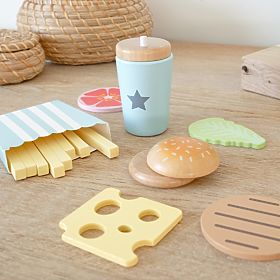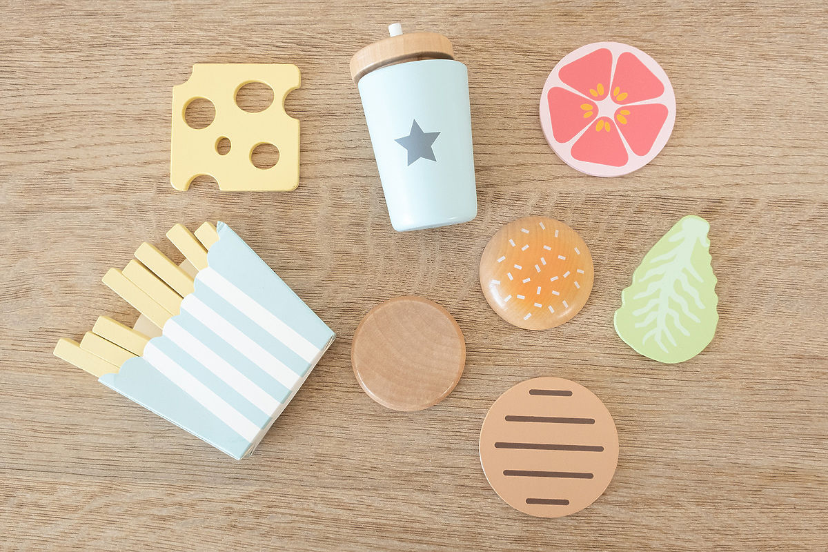 Zdrowy hamburger i frytki? W formie drewnianej zabawki nie zaszkodzą dziecięcemu brzuszkowi i ożywią kącik zabaw. Dzięki temu zestawowi zabawa w kucharza stanie się bardziej realistycznym doświadczeniem, a w połączeniu z innymi zestawami stworzycie miejsce pełne zabawy.