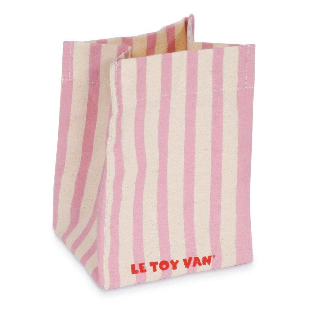Ta zabawka przyniesie niektórym z Was sporą dawkę nostalgii. Pasiasta retro torebka ze słodyczami to mnóstwo słodkiej zabawy, bez bólu zębów. Każdy smakołyk ma unikalną ilustrację, a na niektórych znajdziesz nawet złociste detale. Ta zabawka jest wykonana etycznie z trwałego drewna kauczukowego i jest w 100% bez plastiku! Drewniane słodycze wprowadzą dzieci w magiczny świat wyobraźni. Zabawki z celemWszystkie zabawki firmy Le Toy Van są tworzone z myślą o trwałości. Projektowane z miłością przez doświadczonych rzemieślników przy użyciu etycznych praktyk i zrównoważonych materiałów, które są bardziej przyjazne dla naszej planety. Główne cechy: wykonane etycznie z trwałego drewna, testowane według najsurowszych standardów, malowane nietoksycznymi farbami na bazie wody, inspirują do kreatywnej i wyobraźniowej zabawy, pomagają w rozwoju mowy i umiejętności społecznych, wspierają we wczesnym rozwoju. Kolekcja Honeybake: Zabawki z tej kolekcji są odpowiednie do odkrywania, pomagają dzieciom w rozwoju wyobraźni, umiejętności społecznych i werbalnych oraz funkcji poznawczych. Tradycyjny design z nowoczesnymi detalami z pewnością spodoba się dzieciom. Honeybake to kolekcja Le Toy Van, która zdobyła najwięcej nagród za design, jakość, bezpieczeństwo oraz wartość edukacyjną i zabawową.