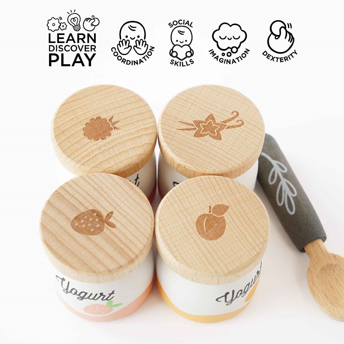 Drewniany zestaw jogurtów do zabawy z łyżeczką. .. więcej