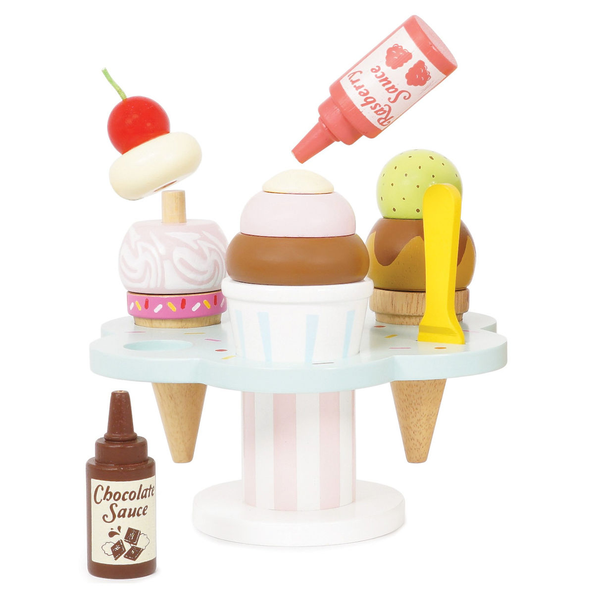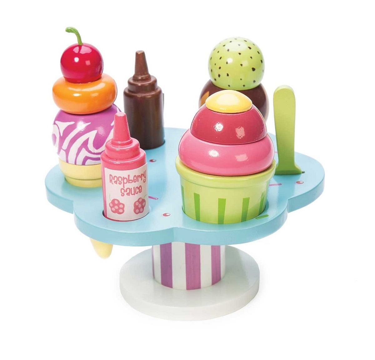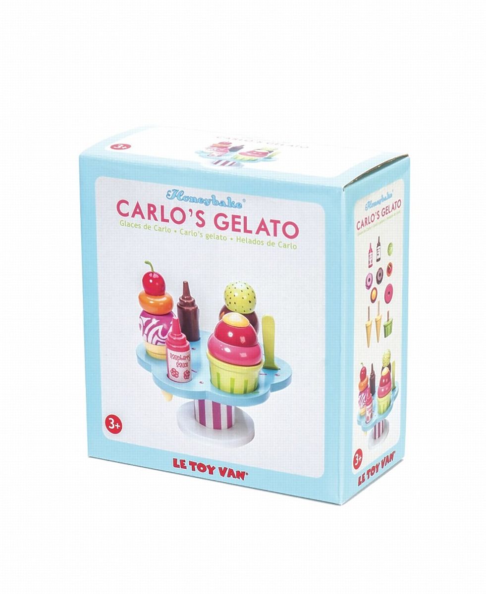 Gałka czy dwie? Dzieci będą miały mnóstwo zabawy z tą kreatywną zabawką do odgrywania ról. Mogą serwować lody w kubeczku lub wafelku, wybierać spośród dwóch polew i posypek, a także używać łyżeczki. Idealna zabawka nie tylko na ciepłe letnie miesiące. Wykonana z trwałego i zrównoważonego drewna FSC®, malowana nietoksycznymi farbami na bazie wody. Zabawki z misją: Wszystkie zabawki firmy Le Toy Van są tworzone z myślą o długowieczności. Projektowane z miłością przez doświadczonych rzemieślników z wykorzystaniem etycznych praktyk i zrównoważonych materiałów, które są przyjazne dla naszej planety. Główne cechy: wykonane etycznie z zrównoważonego drewna, testowane według najsurowszych standardów, malowane nietoksycznymi farbami na bazie wody, inspirują do kreatywnej zabawy, rozwijają umiejętności poznawcze. Kolekcja Honeybake: Zabawki z tej kolekcji są idealne do odkrywania, pomagają dzieciom rozwijać wyobraźnię, umiejętności społeczne i werbalne oraz funkcje poznawcze. Tradycyjny design z nowoczesnymi detalami z pewnością przypadnie dzieciom do gustu. Honeybake to kolekcja Le Toy Van, która zdobyła najwięcej nagród za design, jakość, bezpieczeństwo oraz wartość edukacyjną i zabawową.
