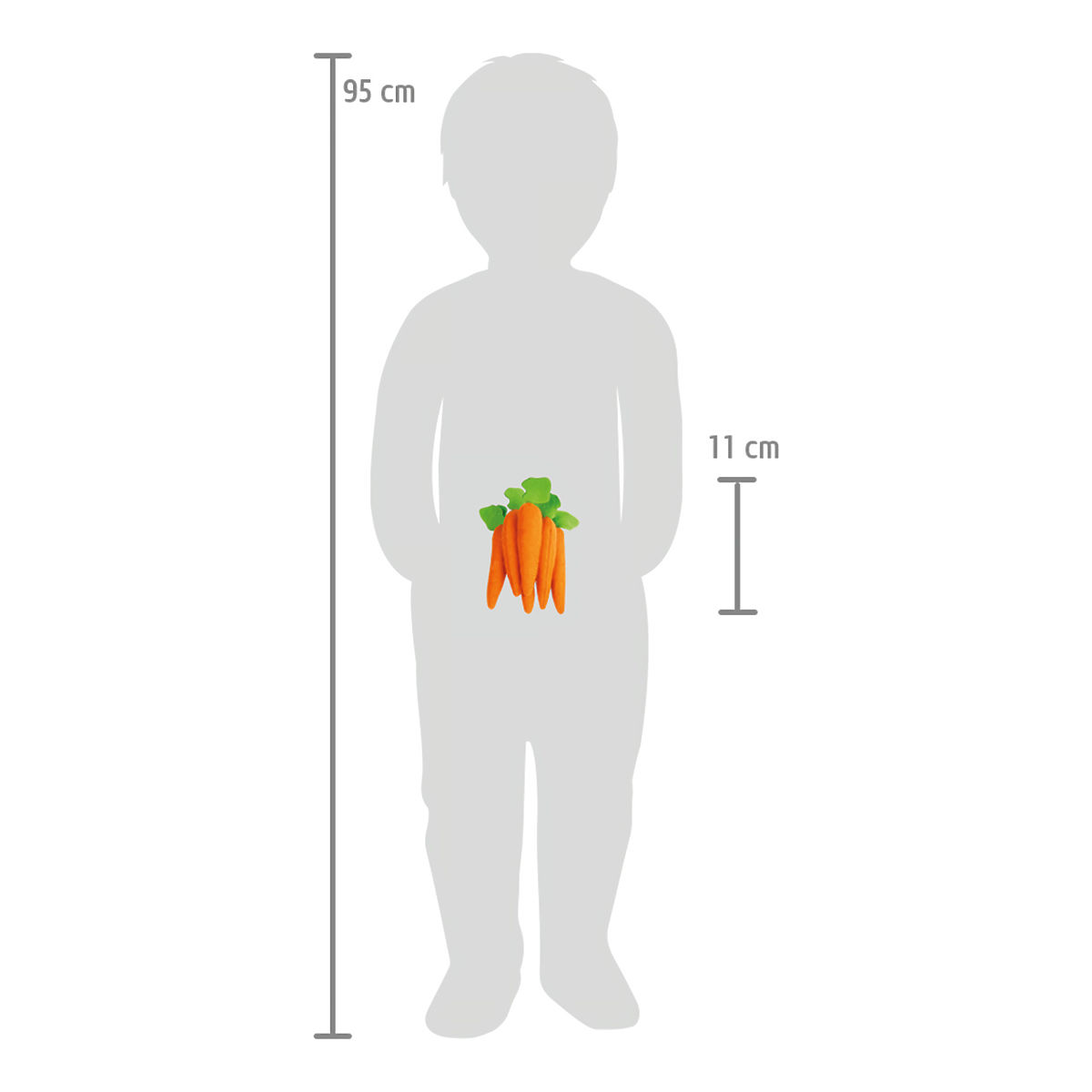 Opakowanie zawiera 7 sztuk filcowych marchewek. Te marchewki przyciągną uwagę i uzupełnią każdy warzywniak. Marchewki doskonale nadają się również jako pokarm dla konia, kucyka lub królika. Główne cechy: dodatek do dziecięcej kuchni, sklepu spożywczego lub jako pokarm na farmę