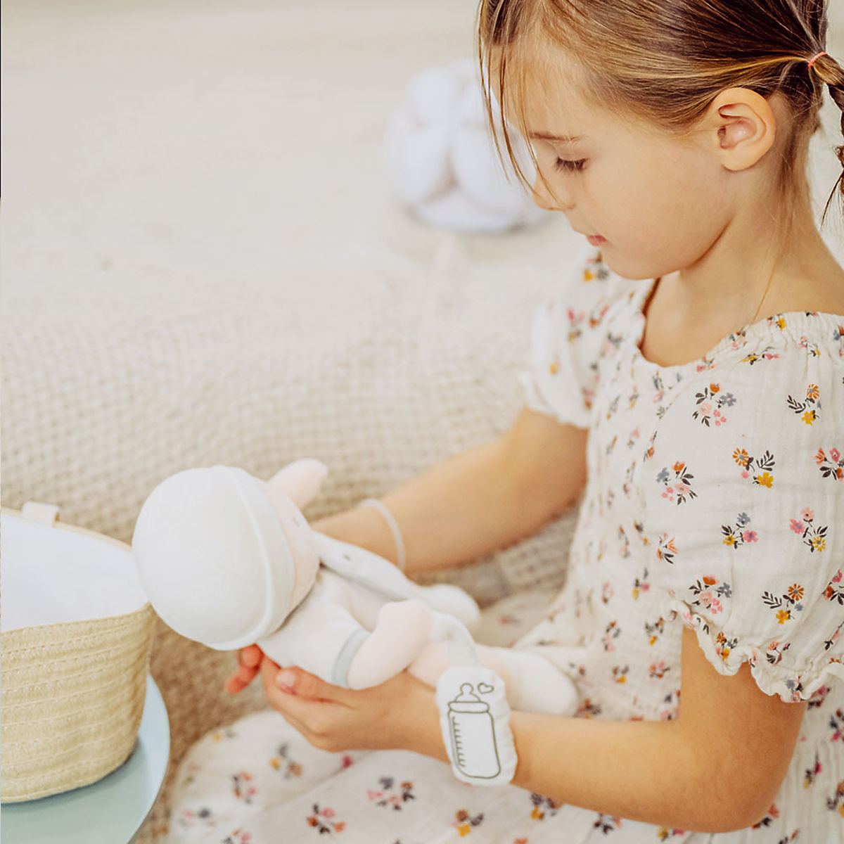 Lalka Pol w przenośnej torbie do wózka jak prawdziwe niemowlę! Ta lalka z czapeczką i skarpetkami jest mięciutka i delikatna dla każdej rączki. Pol ma dodatkowo biało-szary strój, który można lalce zdejmować i ponownie zakładać, a w ręce trzyma swoją małą butelkę. Dzięki przenośnej torbie do wózka lalka Pol jest świetną towarzyszką nie tylko w domu, ale także na wycieczkę do parku czy do przyjaciół. Z tą lalką godziny zabawy są zapewnione. Pielęgnacja: Prać w kąpieli w 30°. Zalecenie: Suszenie naturalne lub w niskiej temperaturze. Zabawka spełnia europejskie normy bezpieczeństwa CE. Główne cechy: odpowiednia od urodzenia, haftowana twarz, oczy i usta, słodkie niemowlę z akcesoriami.