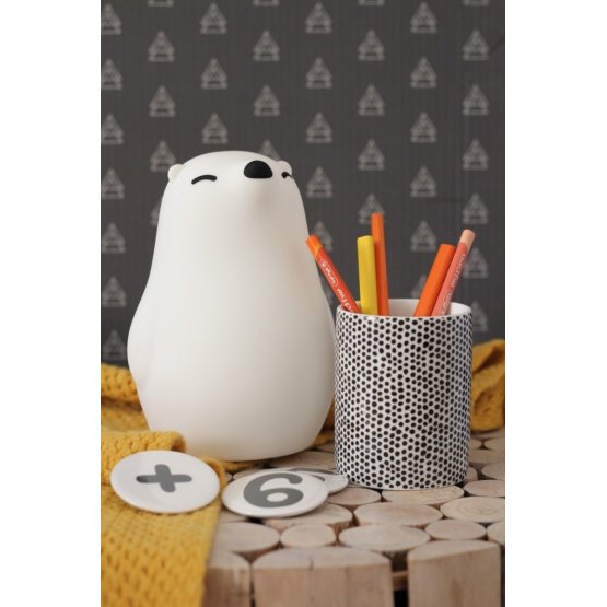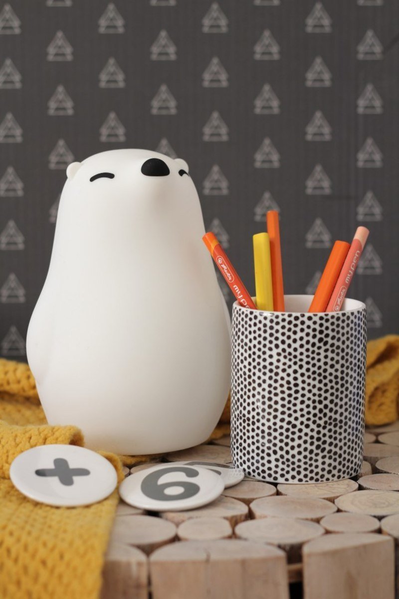 PUFI to miękka dziecięca lampka w kształcie uroczego misia polarnego. Odpędza wszelkie lęki głębokiej nocy. Po dotknięciu misia dioda LED zmienia kolor lub intensywność światła.