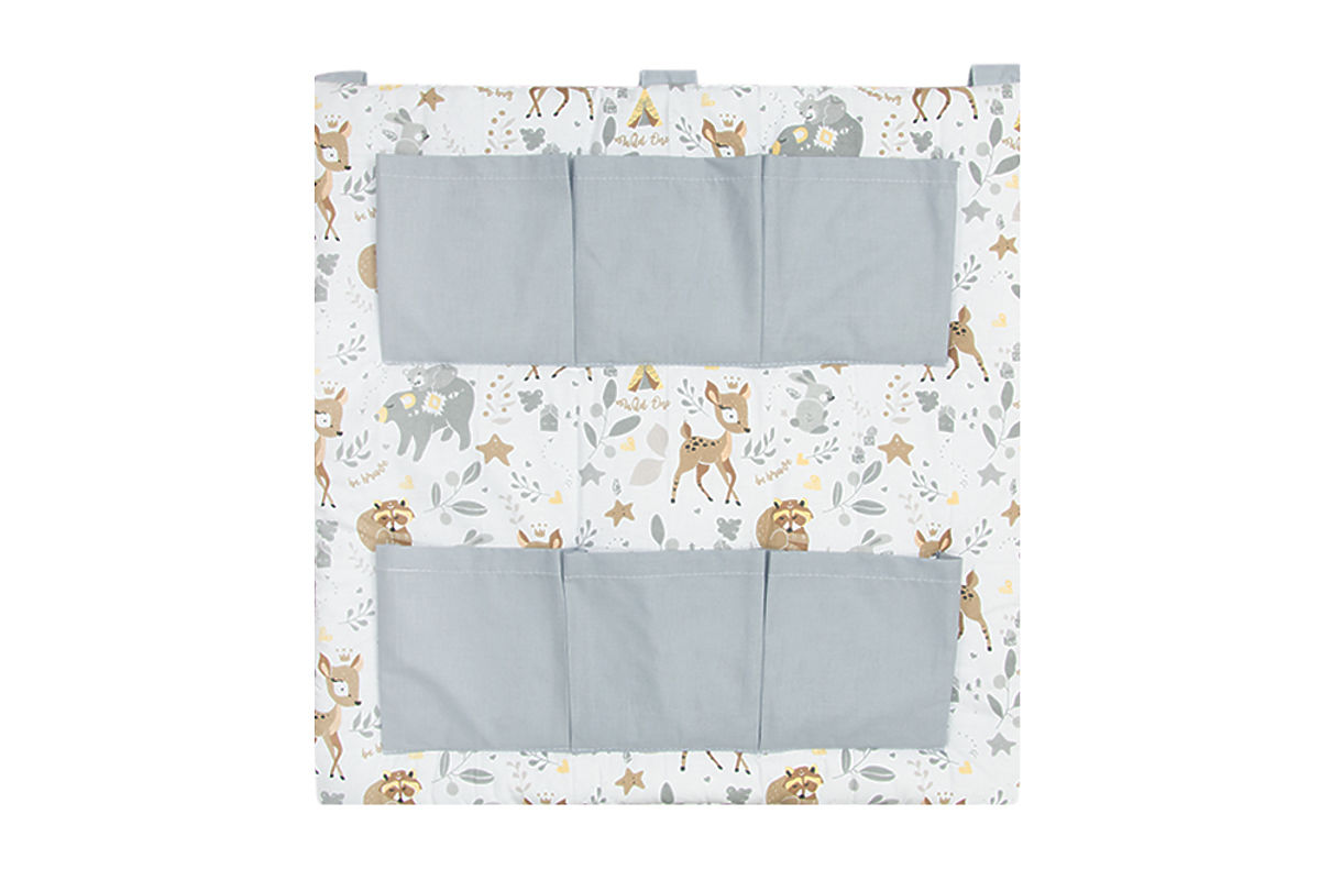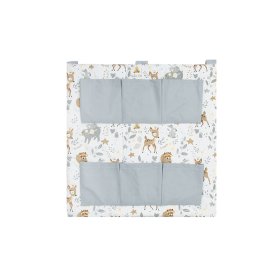 Kieszonkowiec ozdobiony jest pięknym motywem leśnych zwierząt, a kieszenie są w nowoczesnym szarym kolorze. Dzięki uniwersalnej kolorystyce idealnie wpasuje się w każde pomieszczenie.
