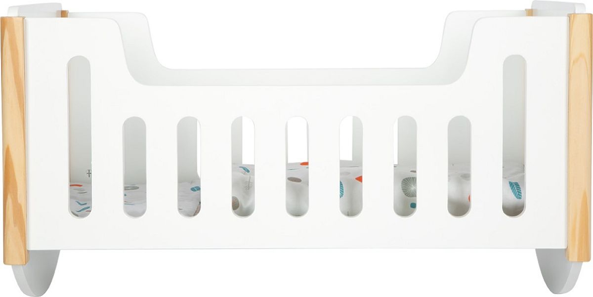 Ta nowoczesna drewniana kołyska w skandynawskim stylu to idealne łóżeczko z możliwością delikatnego kołysania lalek lub pluszowych zwierzątek. W zestawie znajduje się poduszka i duża kołderka, które są pokryte kolorystycznie neutralną, dwustronną pościelą. Dodatkowo, kołderka jest wystarczająco duża, aby wygodnie mogły pod nią spać lalki lub pluszaki do wielkości 46 cm. Wysokiej jakości, stabilna konstrukcja, zaokrąglone krawędzie i delikatne kolorowe tony czynią z kołyski stylowy i wysokiej jakości element. Doskonała zabawka do każdego pokoju dziecięcego. Zestaw zawiera: 1x łóżko, 1x poduszka, 1x kołdra. Główne cechy: drewniana kołyska i łóżeczko w jednym, nadwymiarowa kołdra, dwustronna pościel, solidna konstrukcja, wysokiej jakości wykonanie, zaokrąglone krawędzie, dla lalek i pluszaków do 46 cm, skandynawski design, delikatne kolorowe tony. Little Button. Linia atrakcyjnych akcesoriów dla lalek Little Button oferuje szeroką gamę produktów, od wózka przez krzesełko do karmienia po szafę. Klientów łatwo przyciągną jednolitym funkcjonalnym i dyskretnym designem wykorzystującym proste linie i stonowane neutralne kolory. Dzięki temu mogą tworzyć spójne harmonijne zestawy, które gustownie uzupełnią nowoczesne wnętrze. Przemyślana konstrukcja i wysokiej jakości wykonanie pomagają zapewnić wysoką stabilność, bezpieczeństwo i długą żywotność. Stwórz z ich pomocą stylowy kącik dla lalek, gdzie Twoje dzieci mogą rozwijać swoją wyobraźnię i umiejętności opiekuńcze.