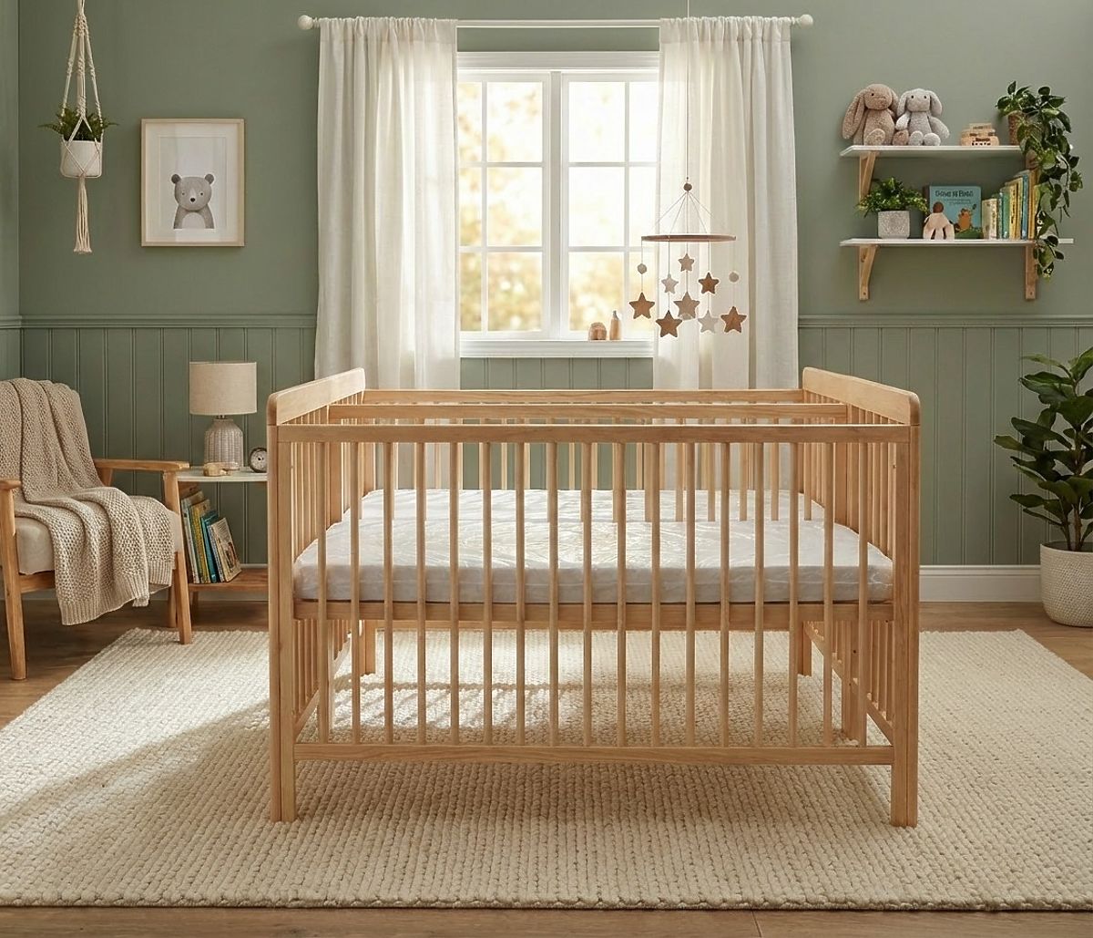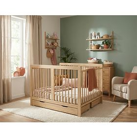 Praktyczne łóżeczko dziecięce z litego drewna sosnowego w naturalnym wykończeniu jest zaprojektowane specjalnie dla bliźniąt. Zapewnia bezpieczną i spokojną przestrzeń do wspólnego zasypiania, jednocześnie oferując możliwość łatwego oddzielenia dzieci dzięki wyjmowanej wewnętrznej barierce. Umożliwia to stworzenie dwóch oddzielnych miejsc do spania, gdy potrzebna jest większa przestrzeń lub prywatność.