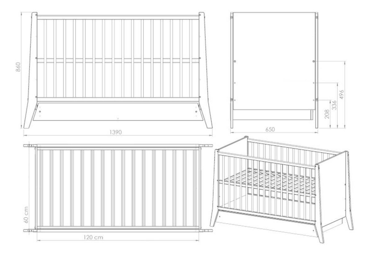 Łóżeczko dziecięce Cosmo 120x60 cm z możliwością przebudowy na tapczan. .. więcej