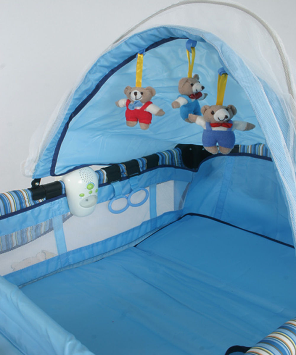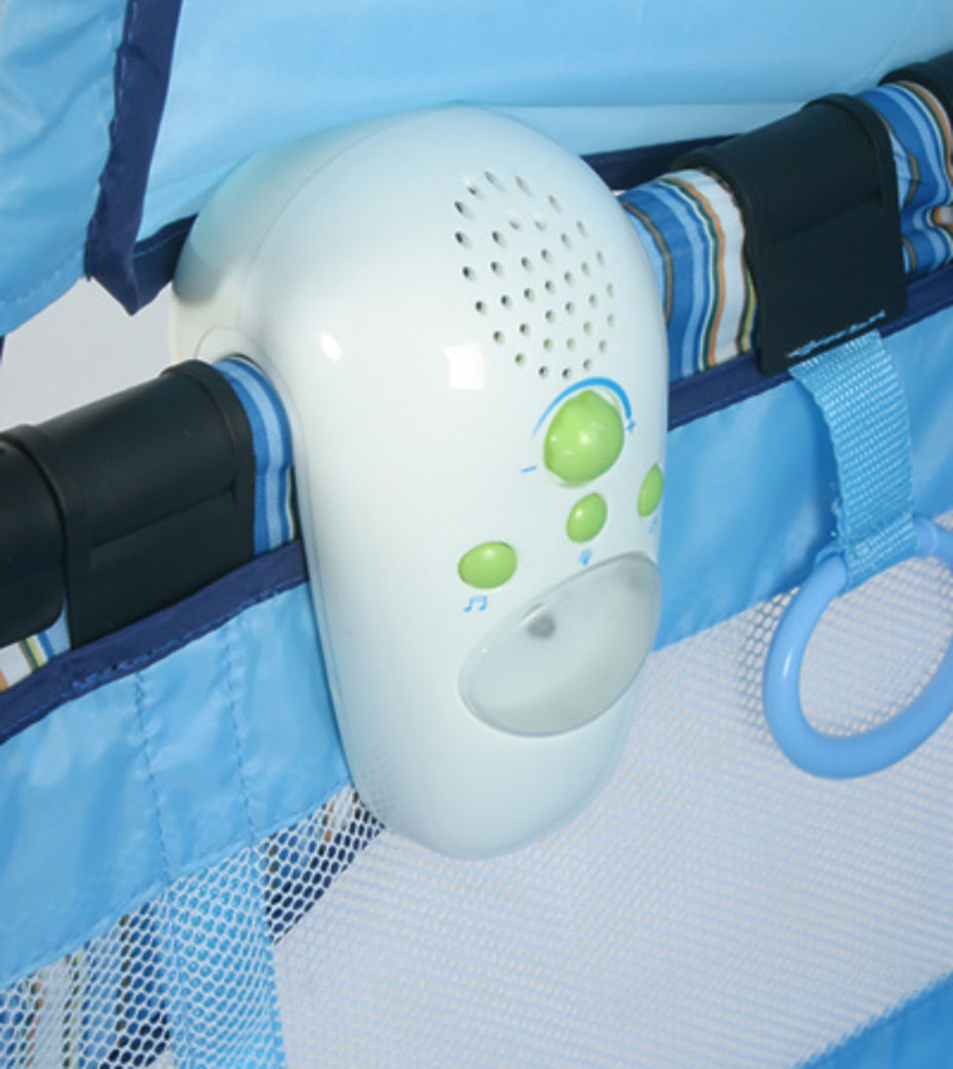 Łóżeczko posiada regulowane dno, które można ustawić na dwóch różnych wysokościach. Poziom wyższy ma nośność do 15 kg, dolny natomiast do 20 kg. Wyposażone jest również w lampkę z regulacją głośności.