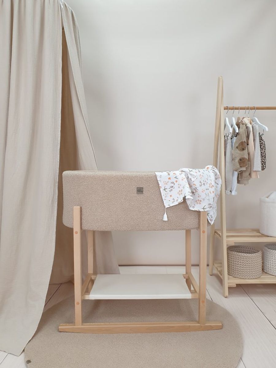 Ten wyjątkowy kosz Mojżesza jest ręcznie wykonany z najwyższej jakości materiałów. Stabilna drewniana podstawa i solidne boki z antyalergicznej pianki zapewniają bezpieczeństwo i komfort dla Twojego niemowlęcia. Dzięki nowoczesnemu pokryciu z miękkiej tkaniny Teddy (buklé) kosz wygląda przytulnie i elegancko, idealnie wpasowując się w każde wnętrze.
