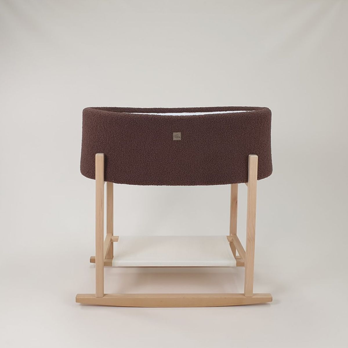 Kosz jest ręcznie wykonany z wysokiej jakości materiałów. Drewniana podstawa z buku zapewnia stabilność, podczas gdy boki z antyalergicznej pianki i miękka tkanina Teddy (buklé) zapewniają wygodę i miękkość. Wnętrze wykonane jest z bawełnianego jerseyu, aby niemowlę zawsze miało przyjemne otoczenie.