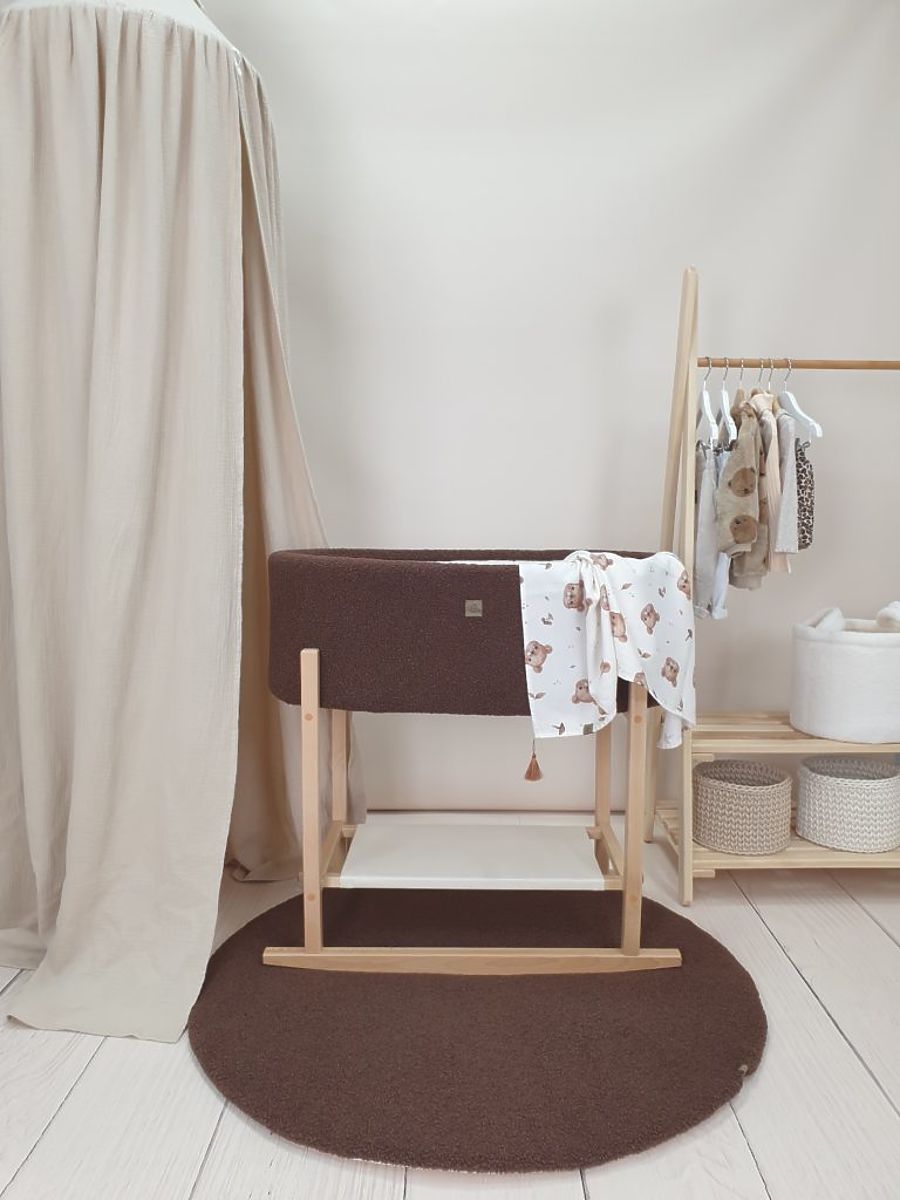 Stylowy i praktyczny kosz Mojżesza dla niemowląt w brązowym wykonaniu, który łączy komfort, bezpieczeństwo i nowoczesny design. Doskonały wybór dla rodziców, którzy chcą zapewnić swojemu noworodkowi przytulne i bezpieczne miejsce do spania.