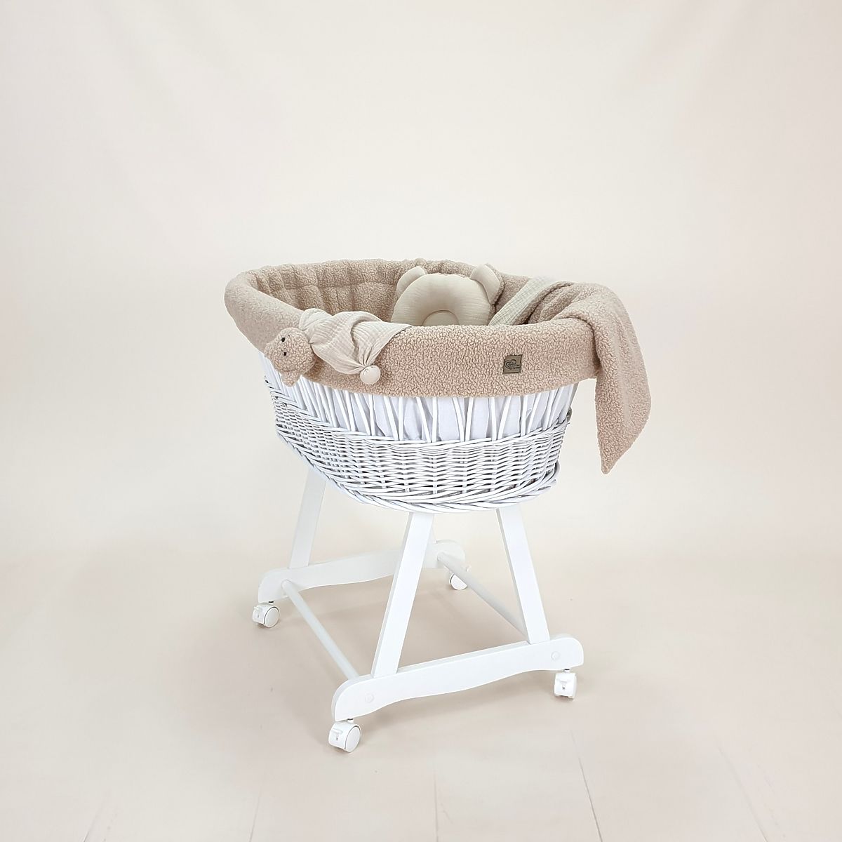 Banaby.pl » Meble dziecięce / Łóżeczka / Łóżeczka wiklinowe / Wiklinowe łóżeczko Teddy dla niemowląt - biały kolor z beżowym wyposażeniem