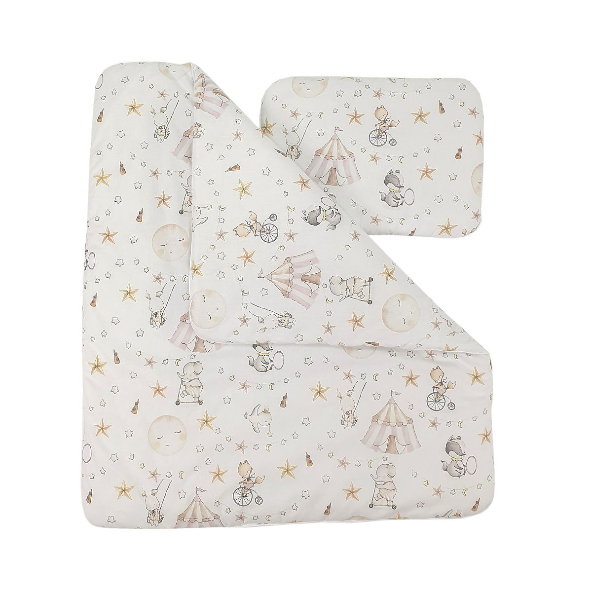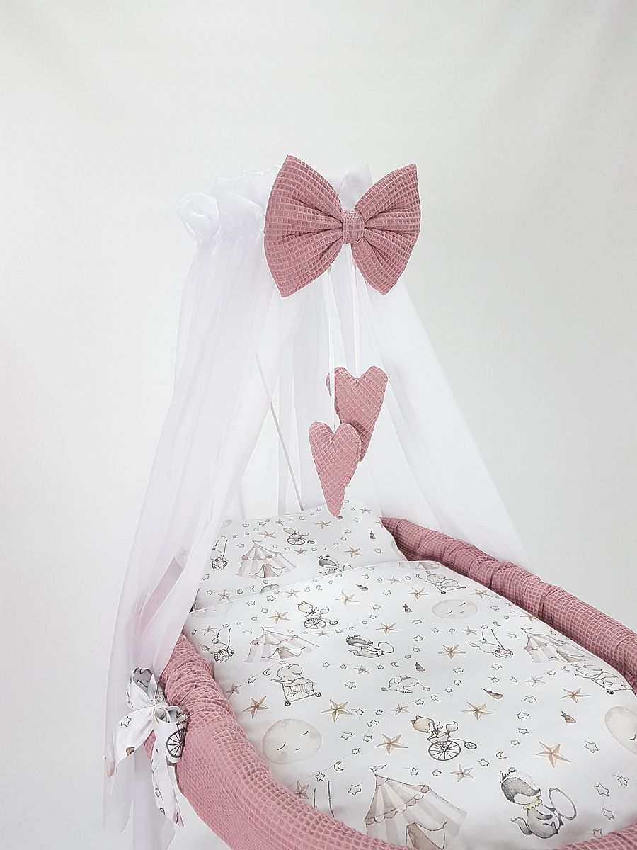 Ten wiklinowy kosz stworzy idealne i przytulne miejsce do spania dla Twojego dziecka w każdym miejscu domu. Biały kosz zawiera 5-częściowy zestaw pościeli z motywem cyrku z atrakcyjnej bawełny waflowej.