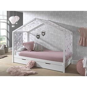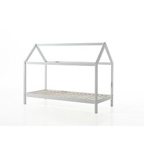 Białe drewniane łóżko Dallas Hip w kształcie domku stanie się doskonałym elementem wyposażenia każdego pokoju dziecięcego. W ciągu dnia stworzy przytulny kącik do zabawy, a w nocy bezpieczne miejsce do spania.