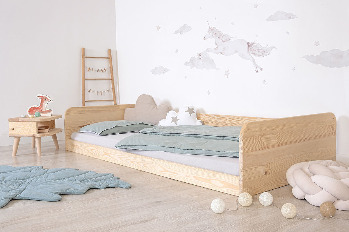 Łóżko Nell 2w1 marki Ourbaby, wykonane z solidnego drewna sosnowego, łączy nowoczesną elegancję z praktycznością. Jego delikatne, zaokrąglone kształty wprowadzają ponadczasowy design i komfort do pokoju dziecięcego. To łóżko nie jest tylko miejscem do spania, ale także tworzy przestrzeń dla marzeń i przygód. Jest inspirowane koncepcją Montessori dzięki niskiemu profilowi, wspiera niezależność Twoich dzieci. Dzięki temu mogą samodzielnie wchodzić i opuszczać świat snu, co przyczynia się do ich poczucia własnej wartości i samodzielności.