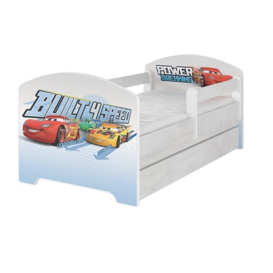 Banaby.pl » Łóżka dla dzieci / Łóżka Disney / Dziecięca łóżko z bariera - Cars 2 - dekoracje norweski sosna