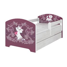 Łóżko dziecięce z motywem kotki Marie i barierką bezpieczeństwa. .. więcej