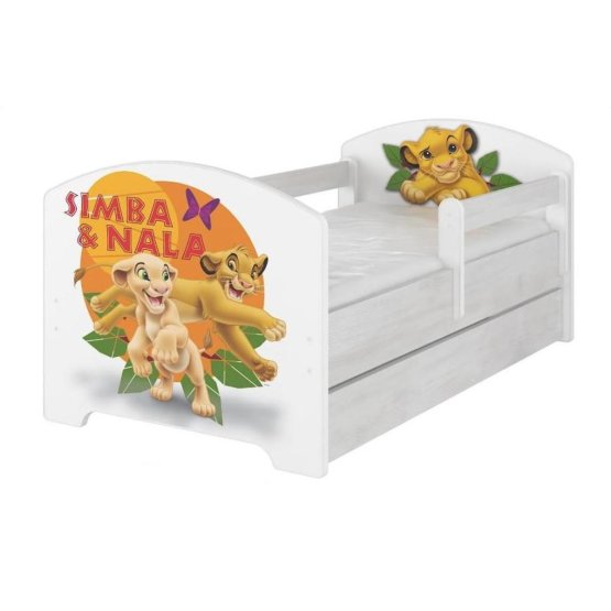 Banaby.pl » Łóżka dla dzieci / Łóżka Disney / Łóżko dziecięce z barierką - Król Lew - dekor norweska sosna