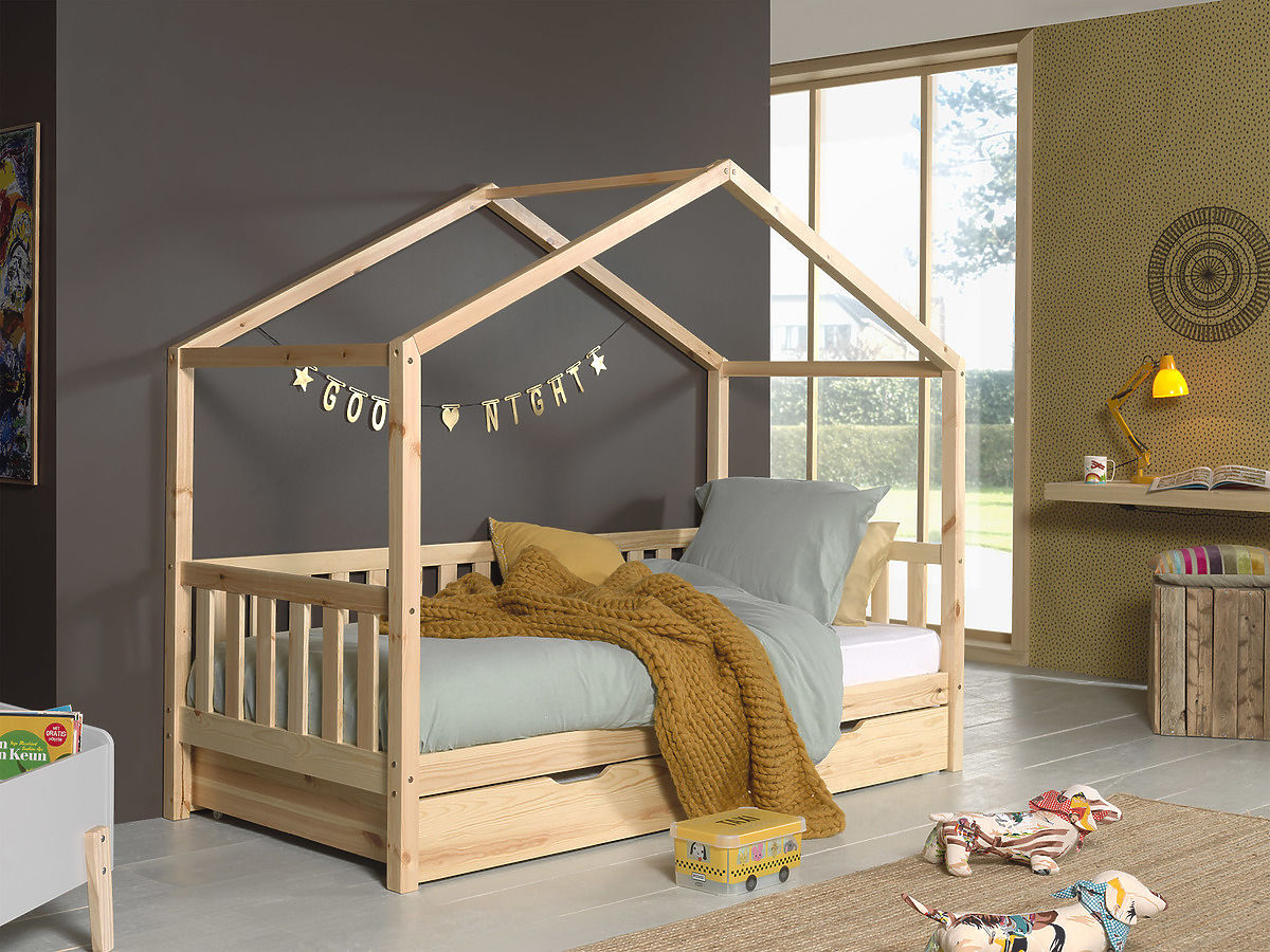 Drewniane łóżko Dallas w skandynawskim stylu w kształcie domku stanie się świetnym elementem wyposażenia każdego dziecięcego pokoju. W ciągu dnia stworzy przytulny kącik do zabawy, a w nocy bezpieczne miejsce do spania.