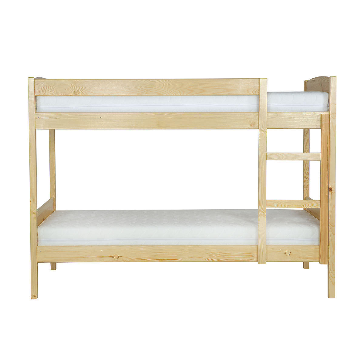 Dzięki precyzyjnemu wykonaniu i wysokiej jakości drewna, meble z litego drewna zapewniają długą żywotność. Powierzchnia jest pokryta nieszkodliwym ekologicznym lakierem. Klasyczne łóżko piętrowe z drewna sosnowego nadaje się do pokoi dziecięcych lub studenckich, gdzie efektywnie oszczędza miejsce. Drabinkę można umieścić po lewej lub prawej stronie.