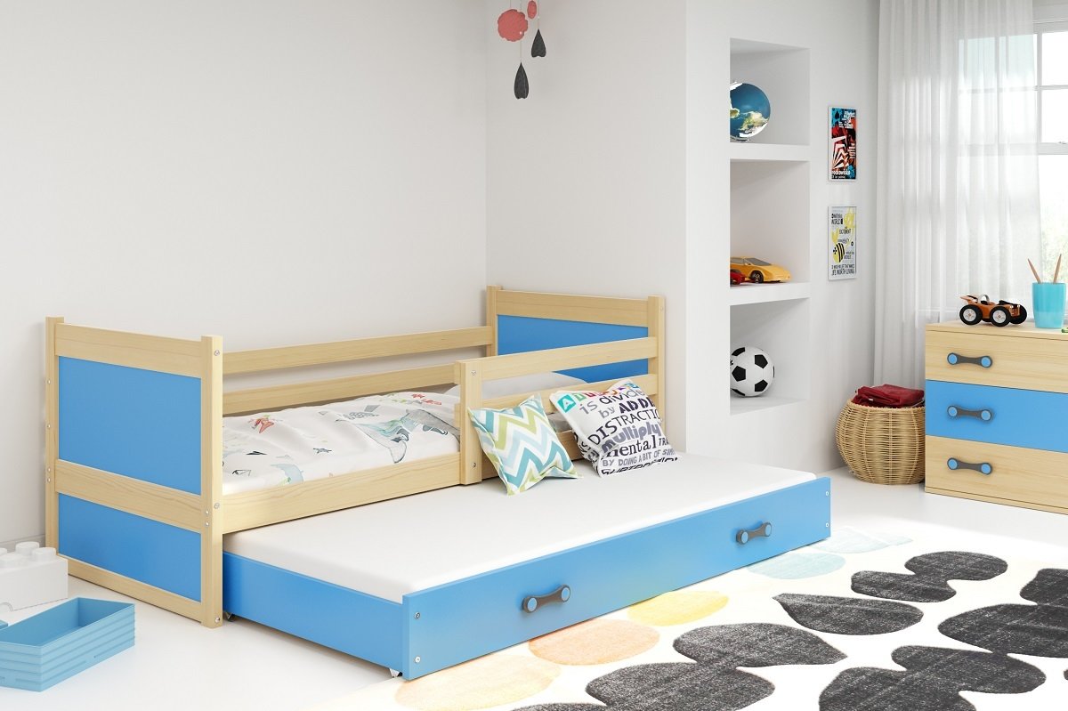 Łóżko drewniane z dostawką Rocky 2 pasuje do każdego pokoju dziecięcego, zarówno ucznia, jak i nastolatka.