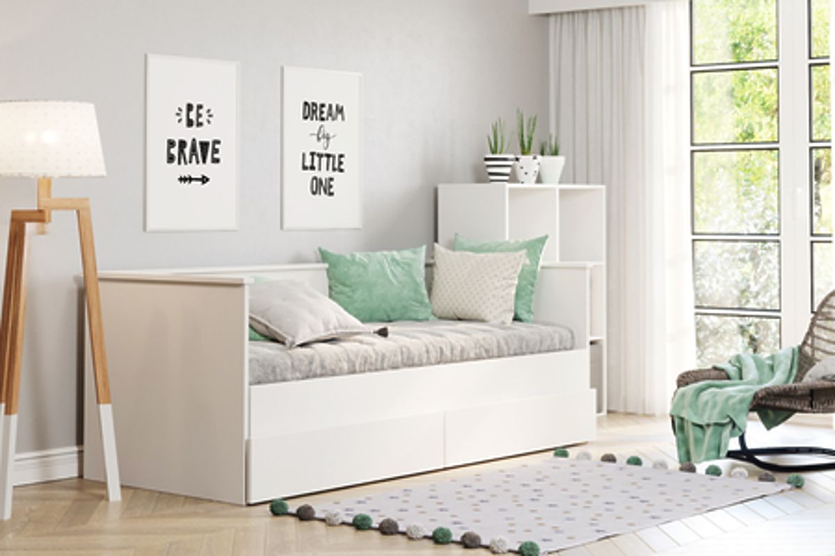 Łóżko HELIOS to nowoczesne, rozkładane łóżko dla młodzieży, które łączy estetykę z praktycznymi funkcjami. Dzięki możliwości szybkiego rozłożenia na dwuosobowe łóżko, poprzez wysunięcie dolnej podstawy, mebel ten doskonale nadaje się zarówno do małych, jak i przestronnych pokoi. Jego uniwersalny design w białym kolorze dopasowuje się do każdego stylu wnętrza, dodając mu świeżości i elegancji.