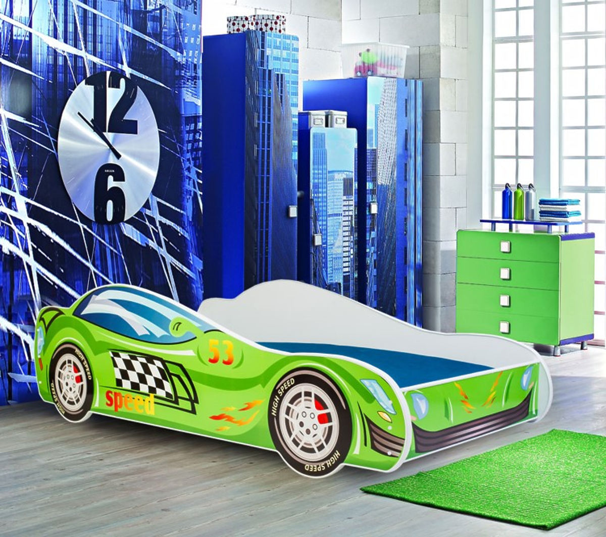 Łóżko samochód dla dzieci z motywem superbohatera i motoryzacji. .. więcej