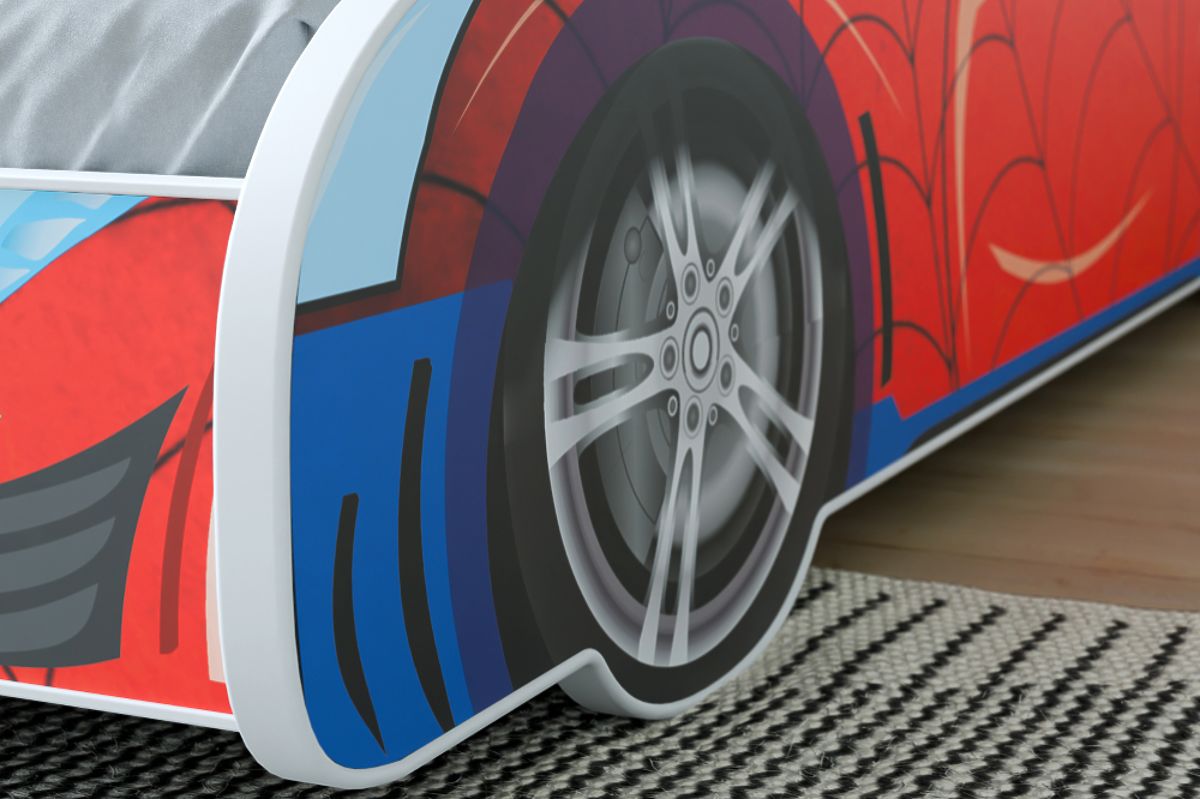 Łóżko samochód z motywem superbohatera dla małych fanów motoryzacji. .. więcej