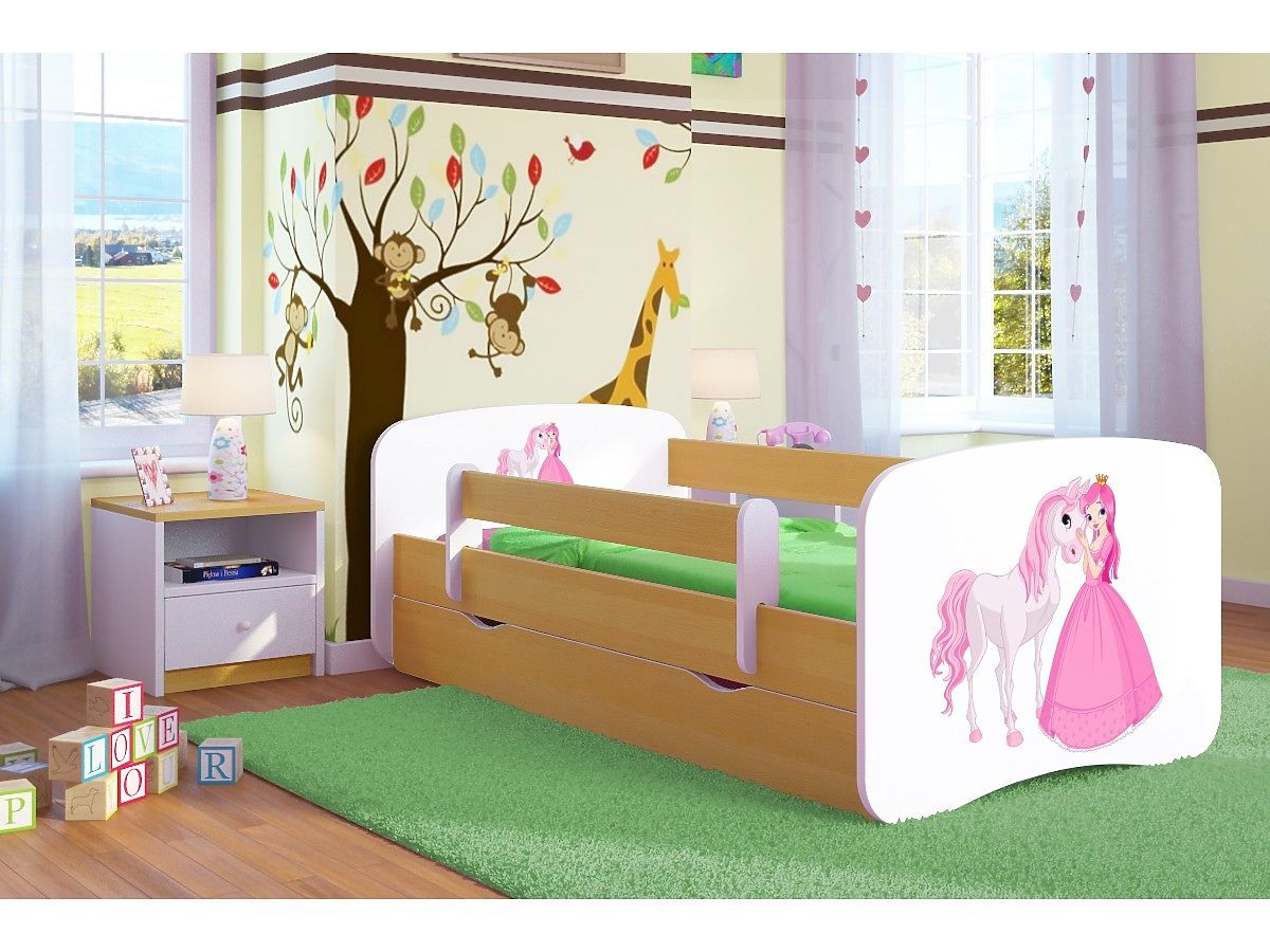 Piękne łóżko dziecięce Ourbaby z księżniczką i jej hobby! Łóżko posiada funkcjonalność, wygodę, dziecięcy design i łatwy montaż. Wykonany jest z płyt laminowanych, rusztu z drewna sosnowego (4 cm x 2 cm), dzięki czemu łóżko może wytrzymać do 120 kg.