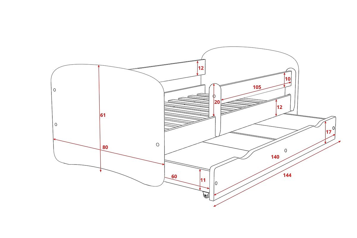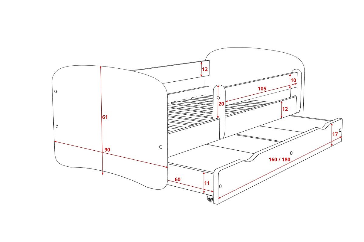 | Dodatkowe cechy łóżka: | z barierką, z szufladą, z nadrukiem |
