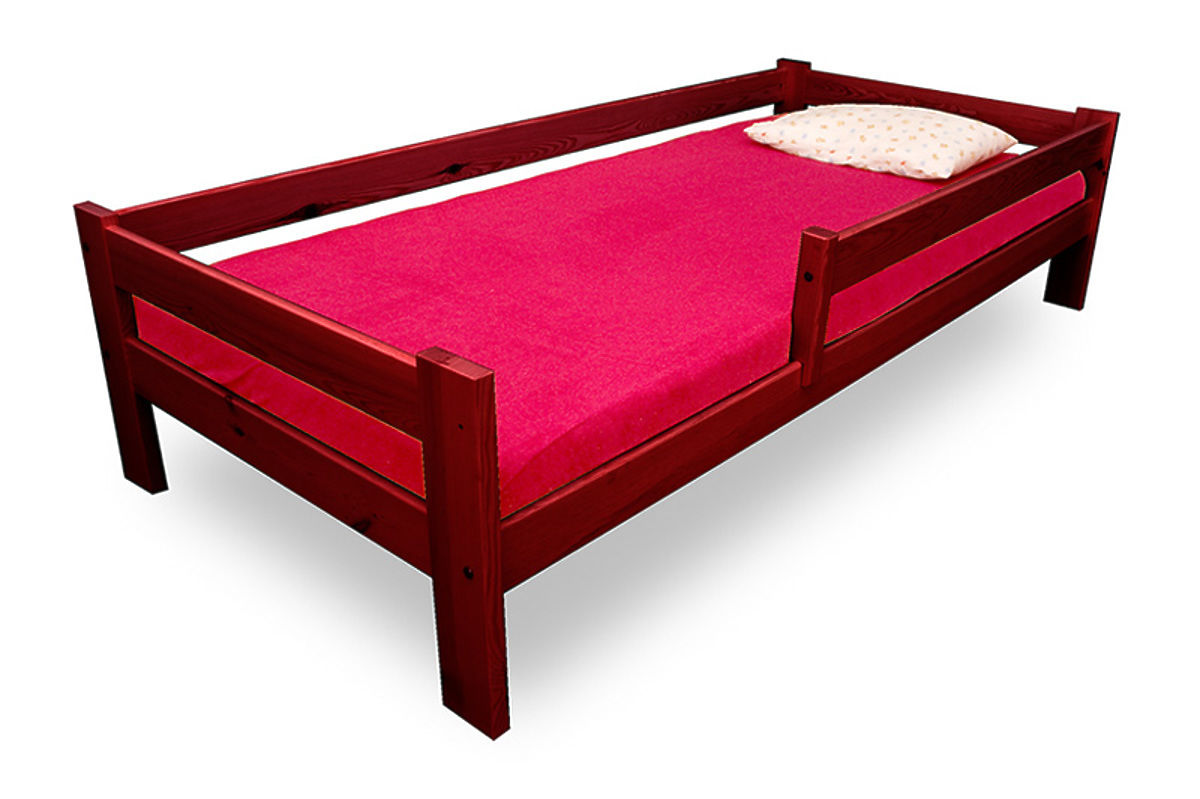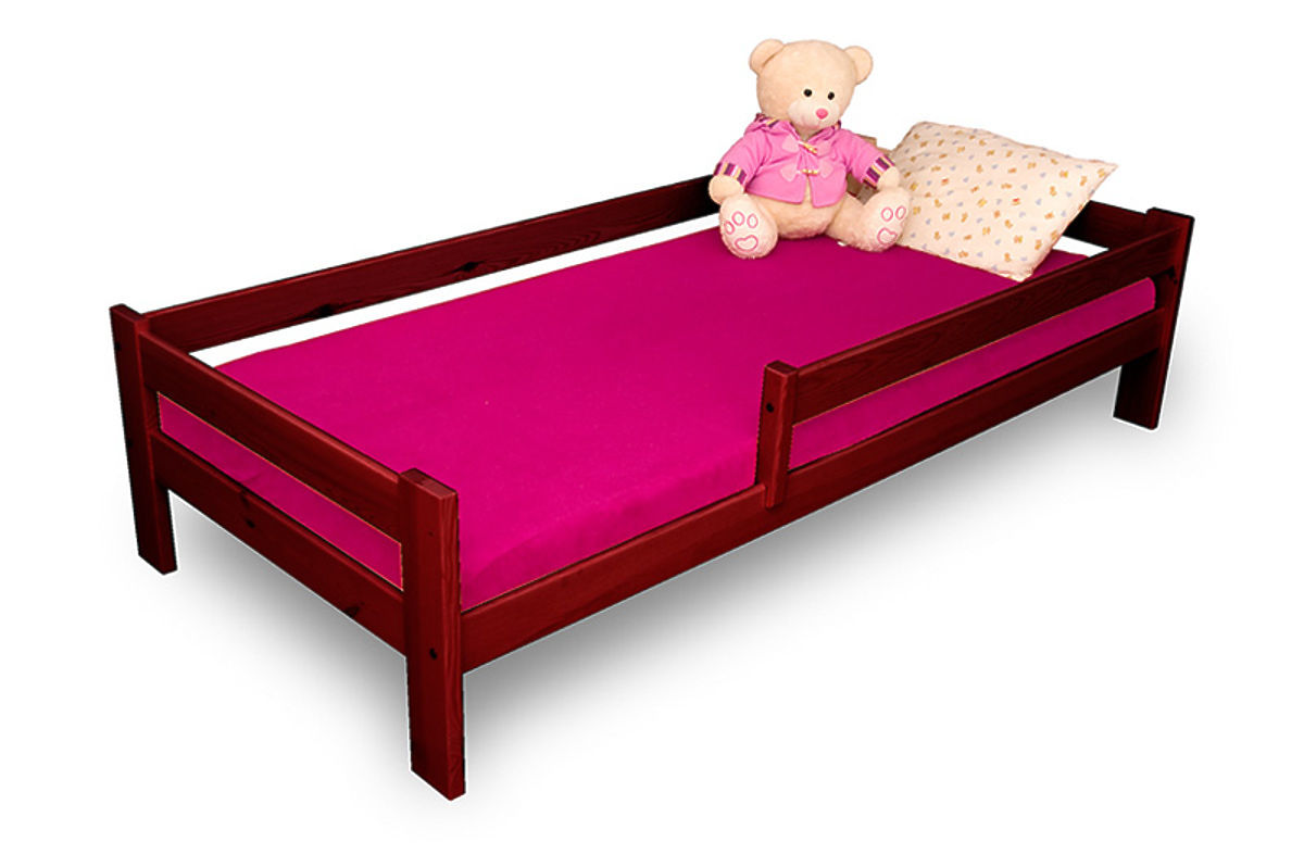 Łóżko dla dziecka z barierką w kolorze mahoniowym wykonane jest z drewna sosnowego. Mebel łączy w sobie tradycję z nowoczesnymi elementami, które z pewnością doceni Twoje dziecko.