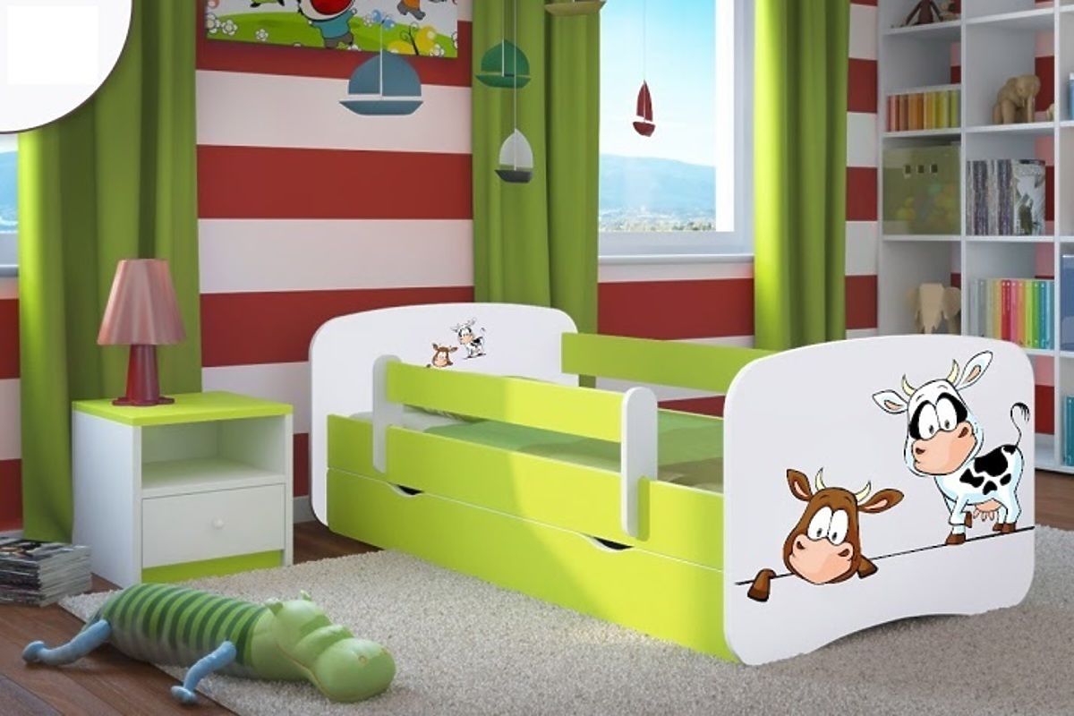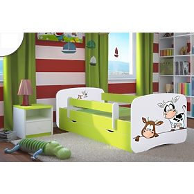 Stylowe łóżko w kolorze zielonym z motywem krówek rozjaśni każdy pokój dziecięcy. Mebel jest bardzo funkcjonalny, wygodny i łatwy w montażu.