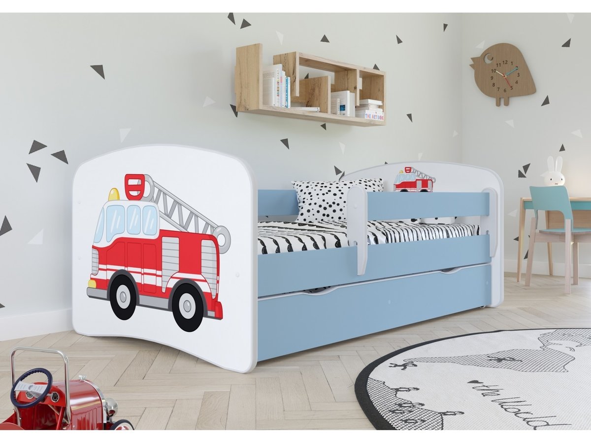 Banaby.pl » Łóżka dla dzieci / Z barierką / Łóżko dziecięce z barierką Ourbaby - Wóz strażacki - niebieskie