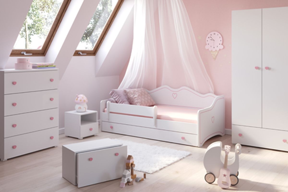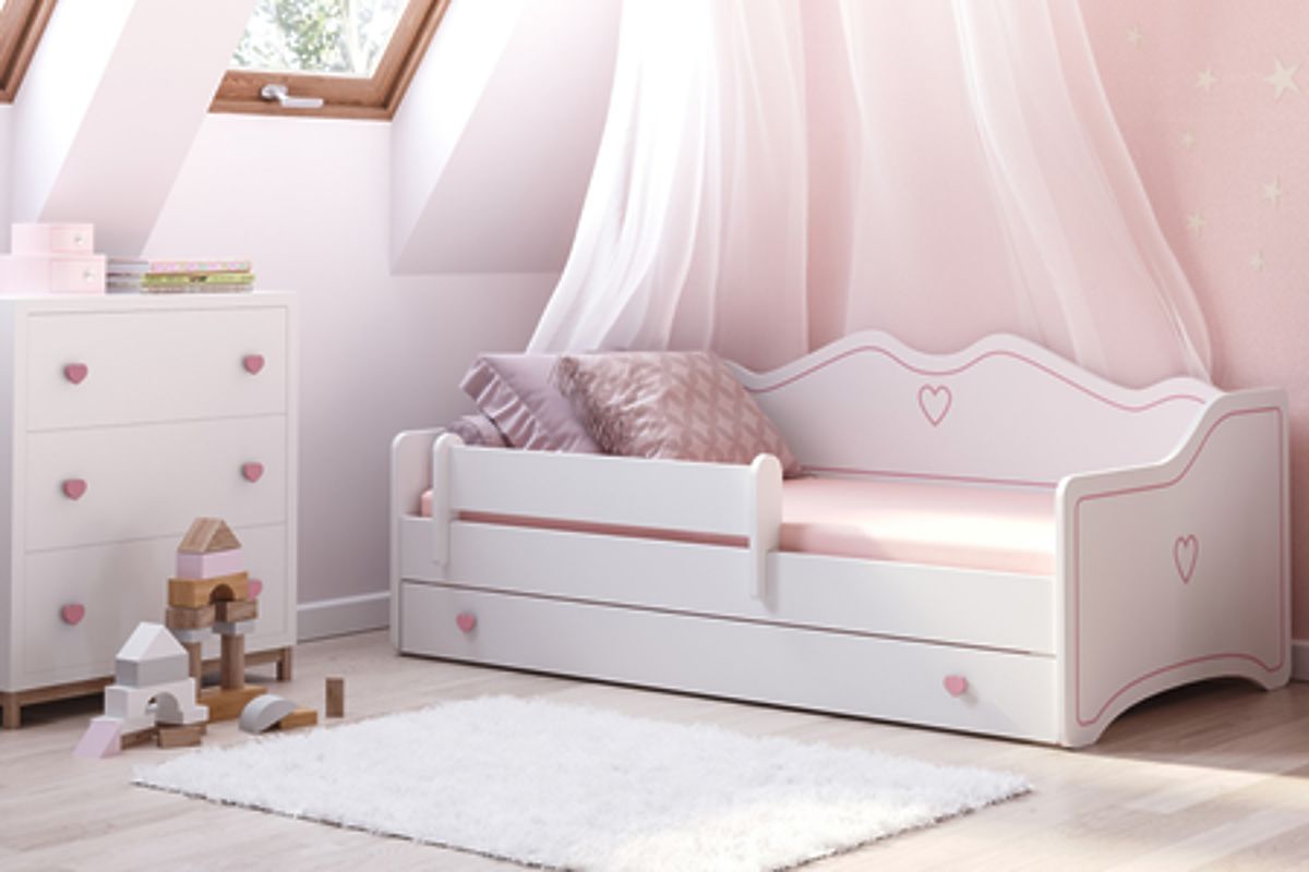 Łóżko dziecięce EMMA 140x70 z szufladą i barierką, różowe. .. więcej